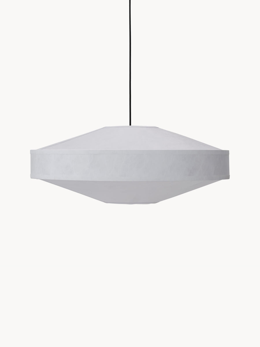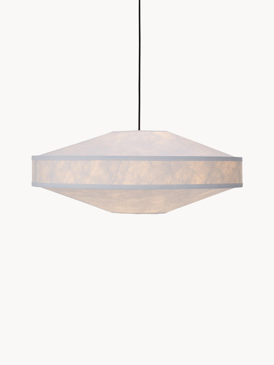 KITE to gra proporcji i abstrakcji, łącząca czyste, geometryczne sylwetki z miękkim, teksturowanym materiałem. Drobne paski obrysowują formy, stanowiąc szczegół techniczny, który zwiększa głębię i kontrast. Niezależnie od tego, czy lampy wiszące KITE są ustawione pojedynczo, czy w zestawieniu, działają jak świecący element rzeźbiarski.