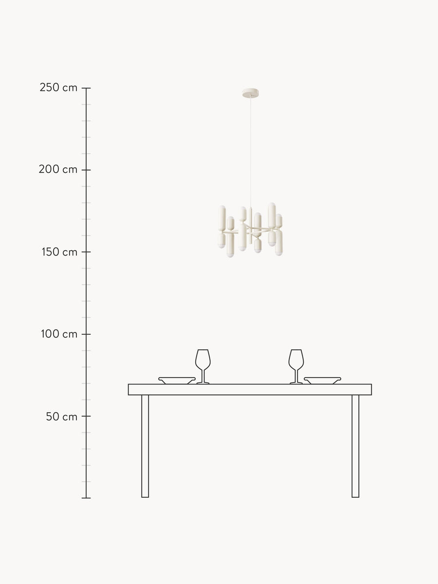 Lampa ma indywidualnie regulowaną wysokość, ale jej ramiona nie podlegają regulacji.