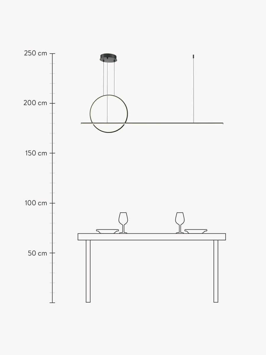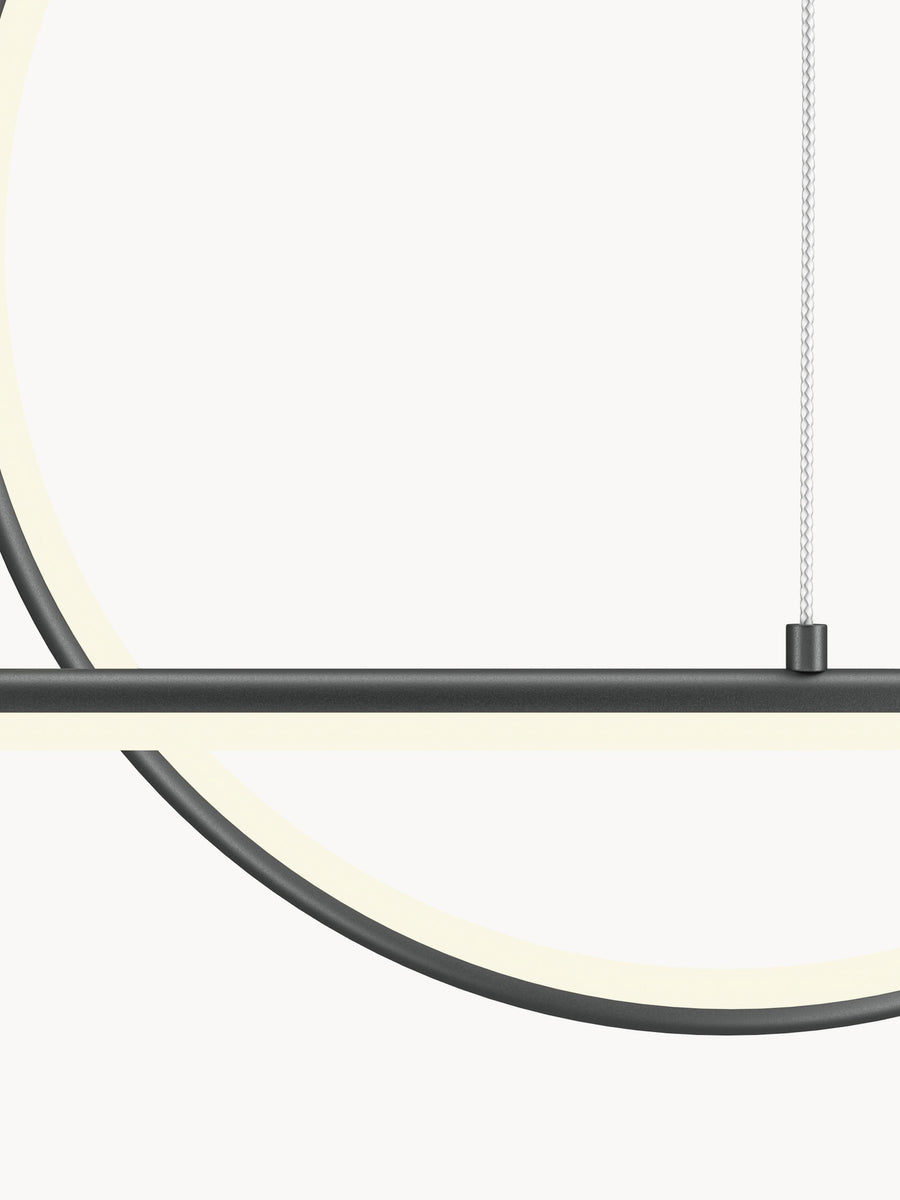 Lampa wisząca jest częścią serii HALO. Eliminując zbędne elementy i wdrażając koncepcję „czystego” światła, projektant skupił się na prostych kształtach geometrycznych. Koła i linie światła to energetyczne i pożądane rozwiązanie dla nowoczesnych wnętrz. Możliwość regulacji temperatury barwy światła. Lampy można łatwo łączyć w grupy, aby stworzyć efektowne akcenty. Seria jest przeznaczona do stosowania w strefach i ogólnym oświetleniu w salonie, kuchni, biurze lub sypialni. Design można łatwo zintegrować z nowoczesnymi stylami: skandynawskim, Mid-Century Modern, Contemporary, loftem, minimalizmem.