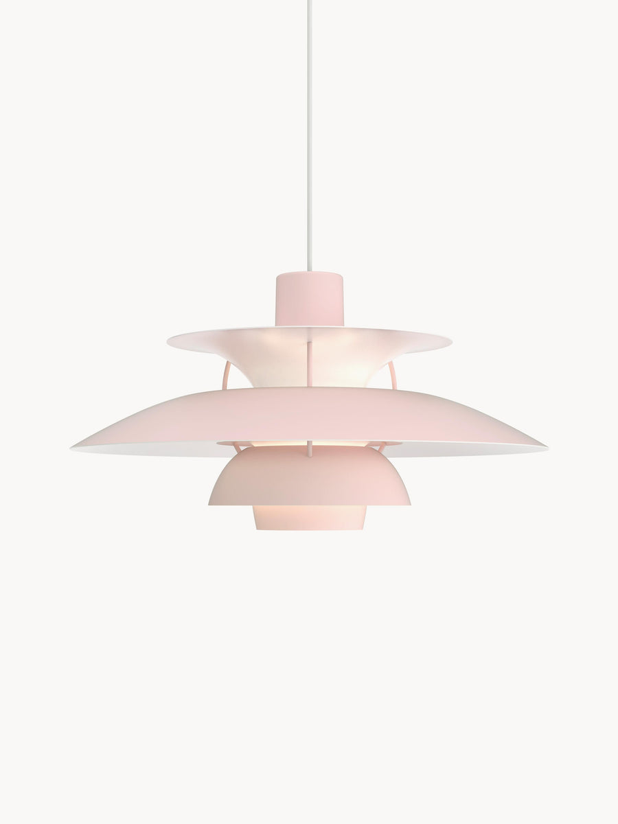 Lampa wisząca emituje nieoślepiające światło skierowane w dół. Jednocześnie oświetla własną ramę, tworząc od środka delikatną, przyjemną poświatę. PH 5 została zaprojektowana przez Poula Henningsena w 1958 roku w odpowiedzi na liczne zmiany w kształcie i rozmiarze żarówek. PH 5 oświetla otoczenie przyjemnym światłem.