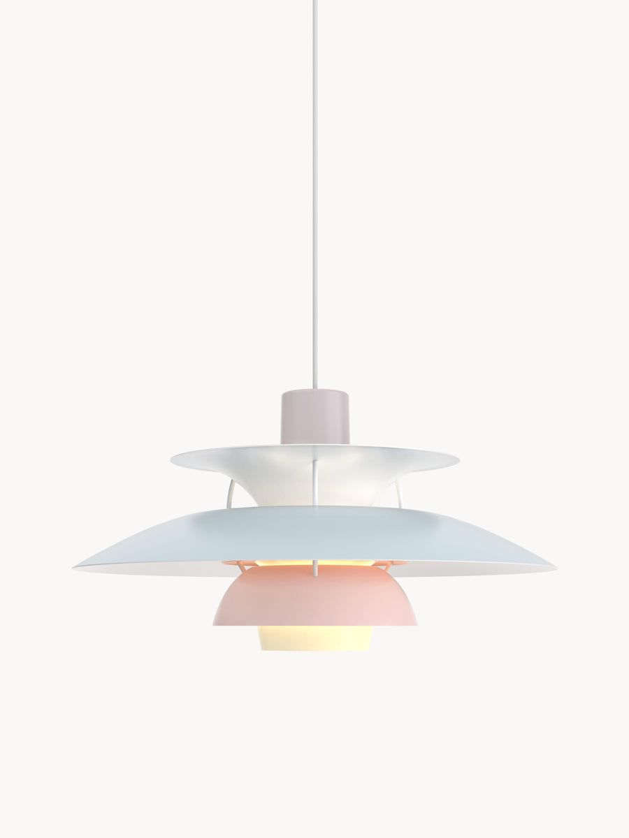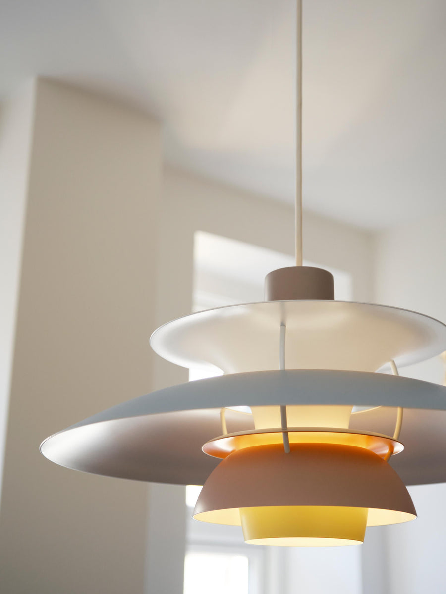 Lampa wisząca emituje nieoślepiające światło skierowane w dół. Jednocześnie oświetla własną ramę, tworząc od środka delikatną, przyjemną poświatę. PH 5 została zaprojektowana przez Poula Henningsena w 1958 roku w odpowiedzi na liczne zmiany w kształcie i rozmiarze żarówek. PH 5 oświetla otoczenie przyjemnym światłem.