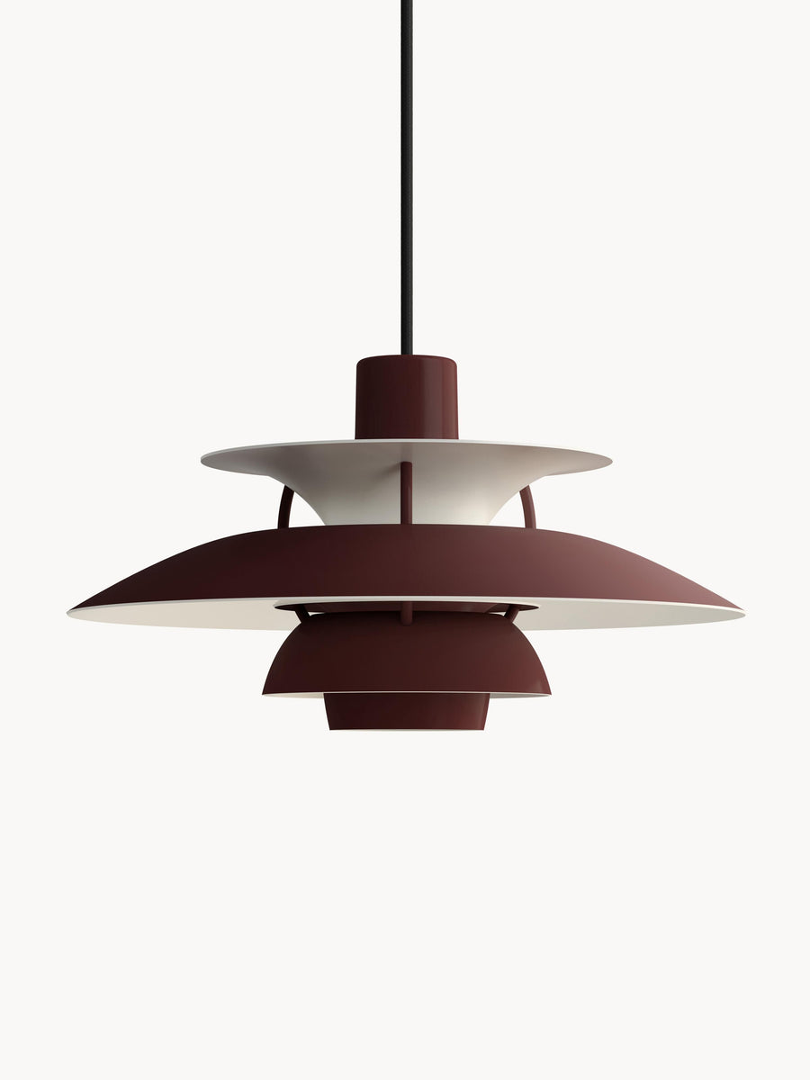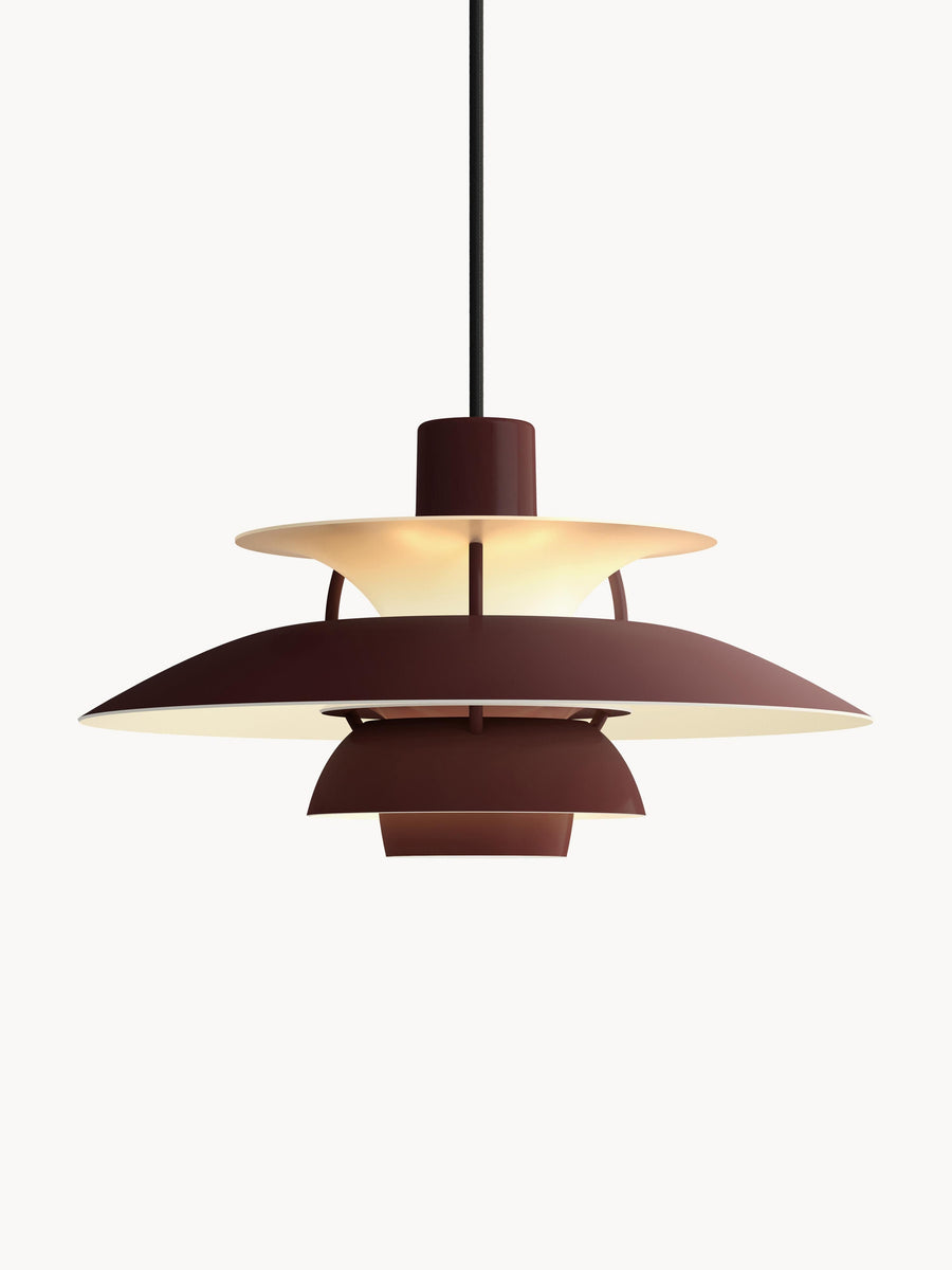 Lampa wisząca emituje nieoślepiające światło skierowane w dół. Jednocześnie oświetla własną ramę, tworząc od środka delikatną, przyjemną poświatę. PH 5 Mini została zaprojektowana przez Poula Henningsena w 1958 roku w odpowiedzi na liczne zmiany w kształcie i rozmiarze żarówek.