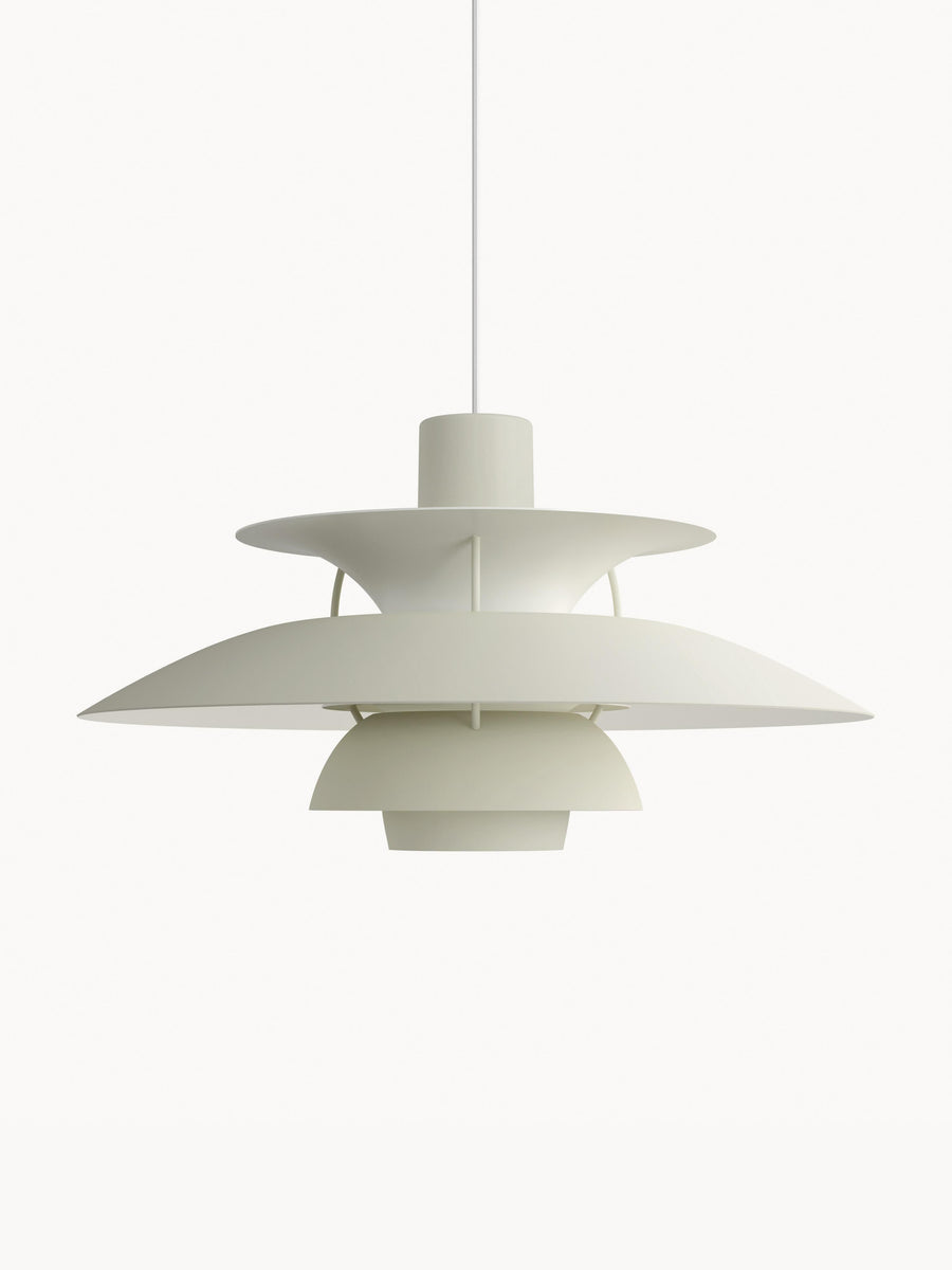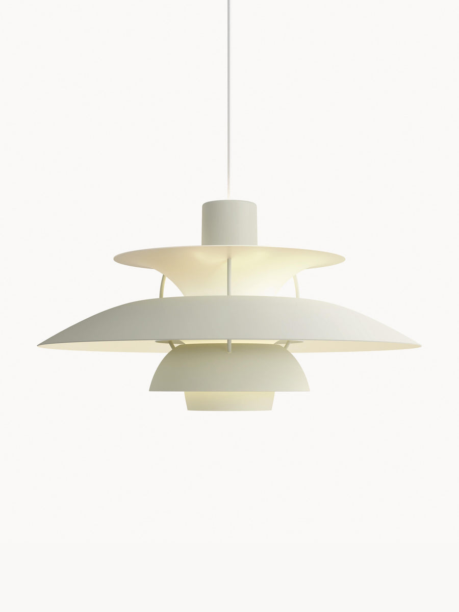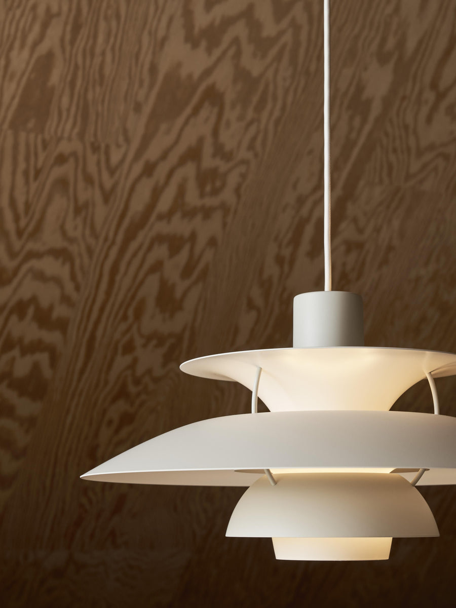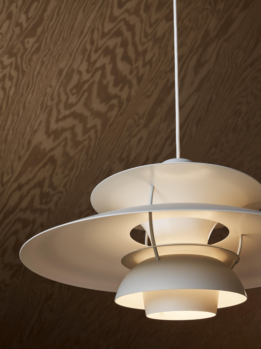 Lampa wisząca emituje nieoślepiające światło skierowane w dół. Jednocześnie oświetla własną ramę, tworząc od środka delikatną, przyjemną poświatę. PH 5 została zaprojektowana przez Poula Henningsena w 1958 roku w odpowiedzi na liczne zmiany w kształcie i rozmiarze żarówek. PH 5 oświetla otoczenie przyjemnym światłem.