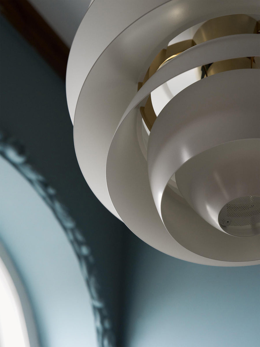 Lampa została zaprojektowana na podstawie systemu trzech kloszy odbijających, który kieruje większość światła w dół. Lampa emituje światło w dół i na boki, co oznacza, że po włączeniu lampa oświetla się sama.
