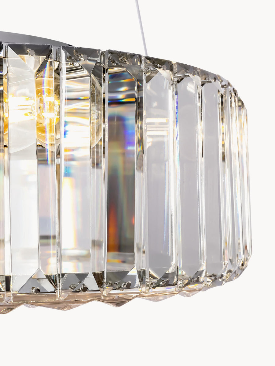 Ciesz się blaskiem i elegancją luksusowej lampy wiszącej z serii Modern firmy Maytoni. Charakter tej lampy przedstawia bogatą grę kryształowych płytek, które doskonale współgrają z metalowymi okuciami w kolorze chromu. Wysokość lampy można łatwo regulować, aby dostosować ją do wystroju pomieszczenia.