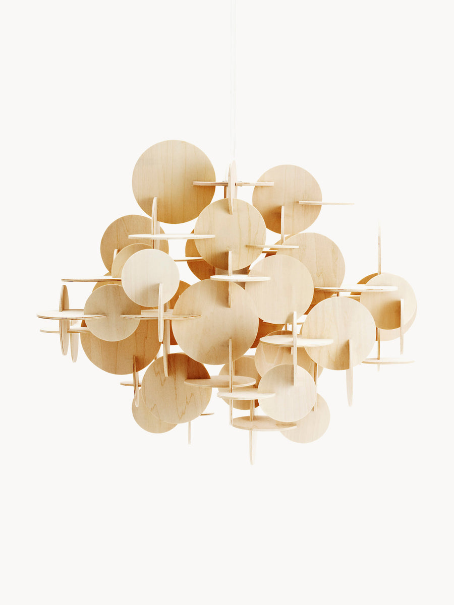 BAU to kolekcja lamp autorstwa Vibeke Fonnesberg Schmidt, charakteryzująca się rzeźbiarską estetyką i odważnym użyciem form geometrycznych. Projekt bada interakcje pomiędzy kompozycją i konstrukcją, skutkując serią lamp wiszących, które pełnią funkcję zarówno oświetlenia, jak i sztuki. Wykonane z przeplatających się drewnianych dysków o różnych rozmiarach, lampy BAU tworzą dynamiczny i zabawny wyraz. Połączenia off-center i warstwowa geometria łamią symetrię, nadając każdemu egzemplarzowi organiczny, żywy charakter. Zmieniając kąt patrzenia, zmienia się również postrzeganie lampy, które nieustannie przesuwa się i przyciąga wzrok.