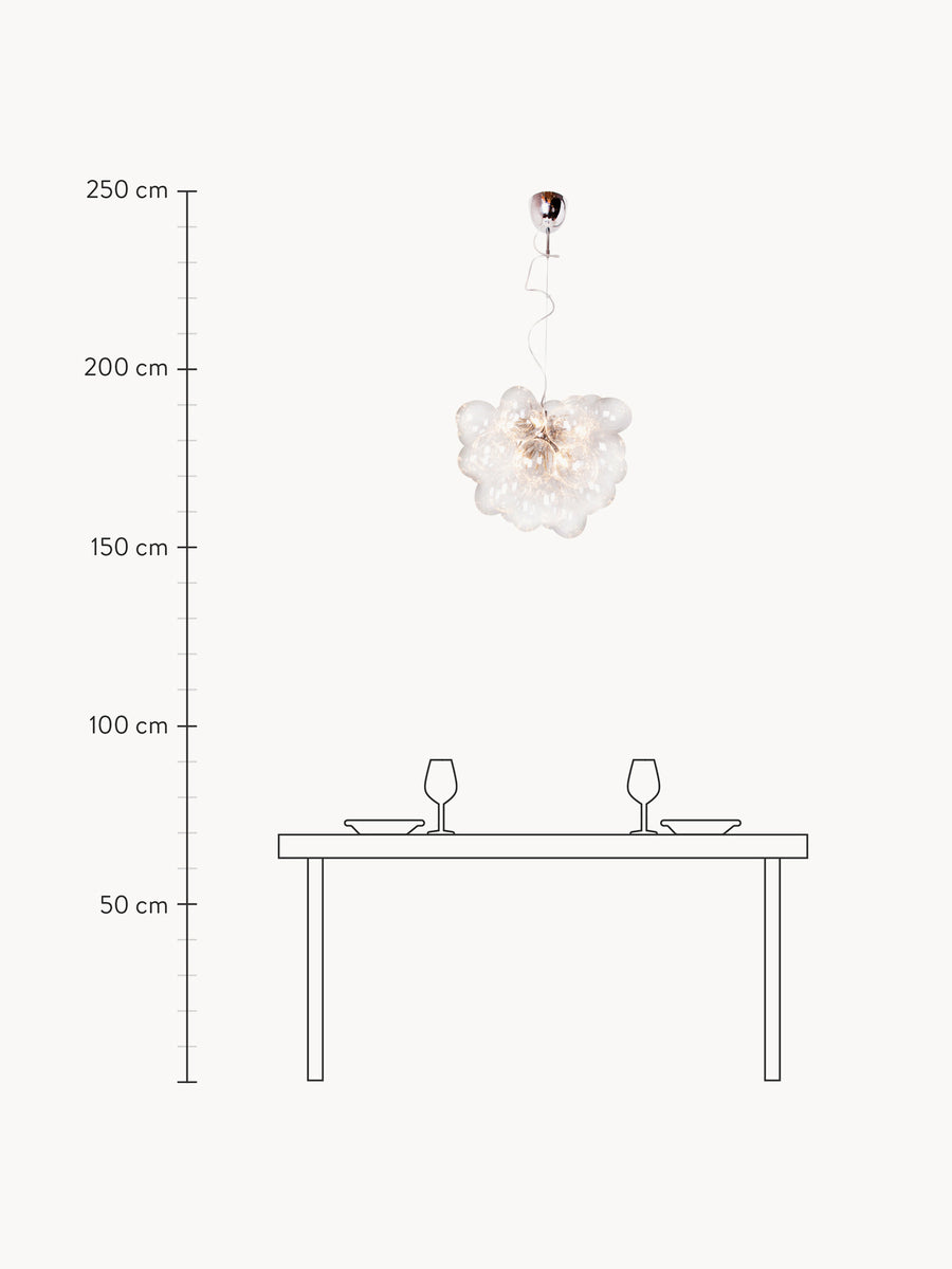 Poznaj najnowszy dodatek do rodziny GROSS – lampę wiszącą GROSS z mosiężnym zawieszeniem. Dzięki eleganckiemu zawieszeniu i 37 ręcznie dmuchanym, szklanym kulom, ta lampa wisząca doda Twojemu domowi ponadczasowego uroku.
