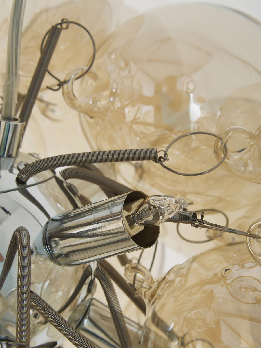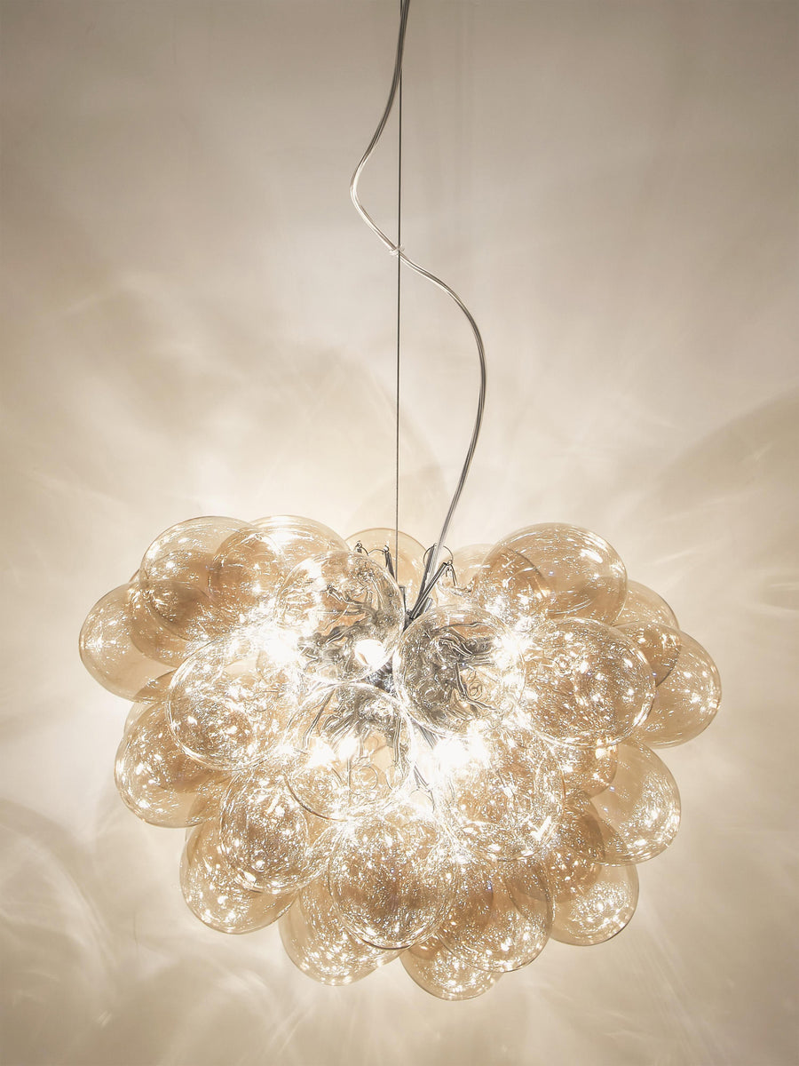 Poznaj najnowszy dodatek do rodziny GROSS – lampę wiszącą GROSS z mosiężnym zawieszeniem. Dzięki eleganckiemu zawieszeniu i 37 ręcznie dmuchanym, szklanym kulom, ta lampa wisząca doda Twojemu domowi ponadczasowego uroku.
