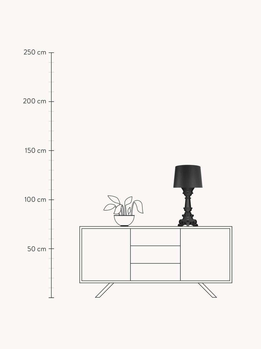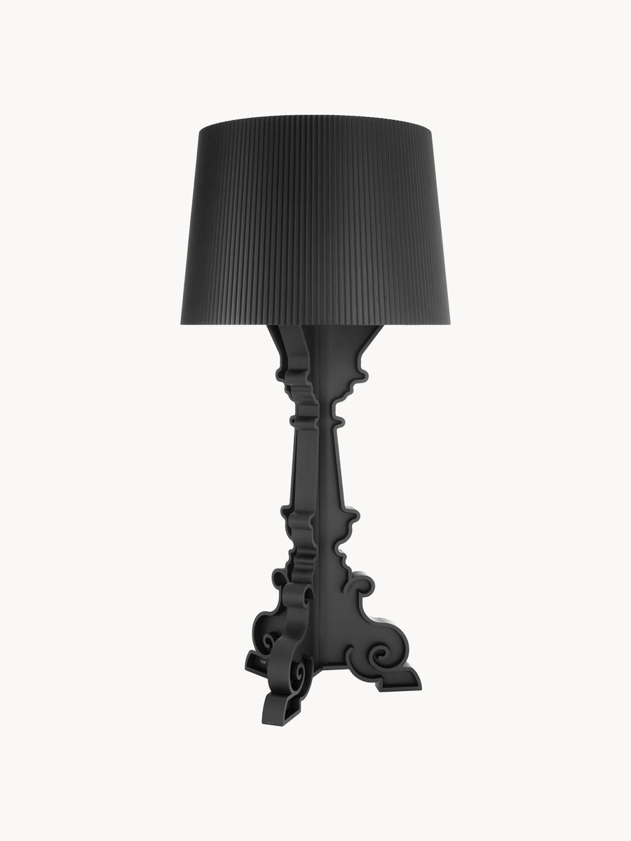 Bourgie od projektanta Ferruccio Lavianiego łączy klasyczny design, sztukę i tradycję z technologicznymi innowacjami. Podstawa w stylu barokowym składa się z trzech dekorowanych krzyżujących się powierzchni, a duży klosz z efektem plisowania tworzy zaskakującą grę światła z tysiącem refleksów.