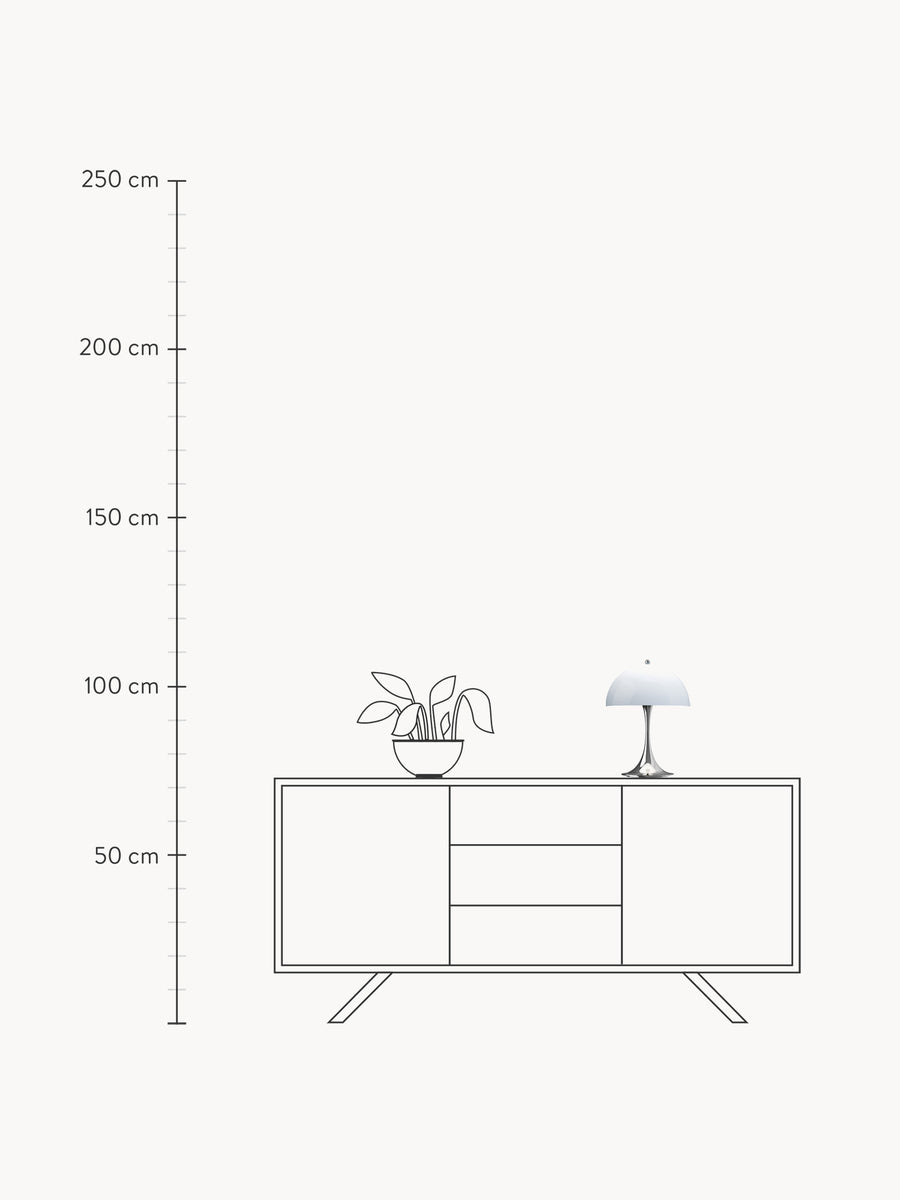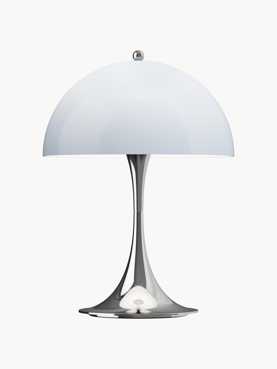 PANTHELLA, zaprojektowana w 1971 roku przez Vernera Pantona we współpracy z Louisem Poulsenem, łączy zabawny styl Pantona z organicznymi kształtami, tworząc wyjątkowe, przyjemne światło. Półkulisty klosz kieruje większość światła w dół, które następnie odbija się od podstawy w kształcie trąbki, oświetlając otoczenie delikatną, rozproszoną poświatą.