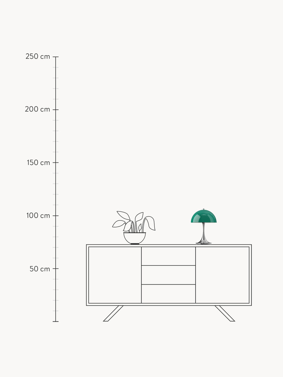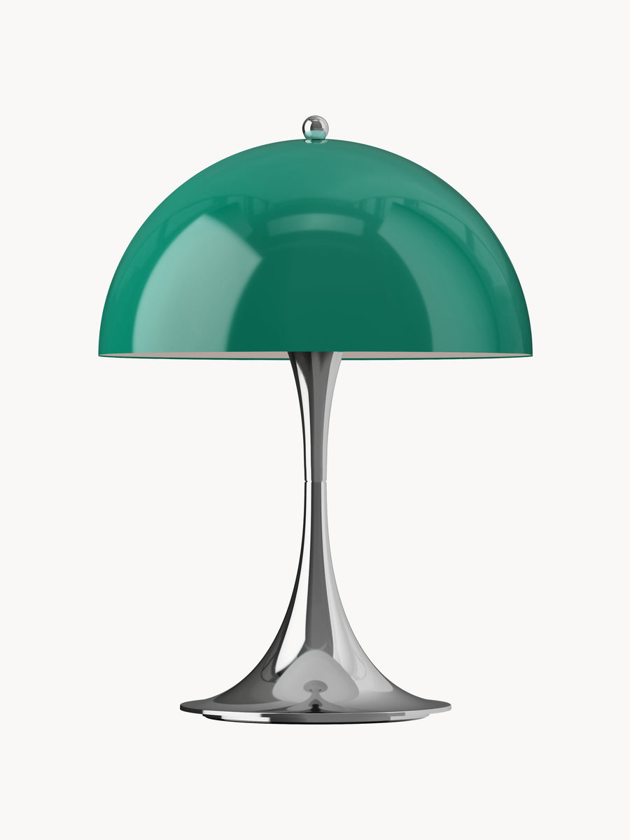 PANTHELLA, zaprojektowana w 1971 roku przez Vernera Pantona we współpracy z Louisem Poulsenem, łączy zabawny styl Pantona z organicznymi kształtami, tworząc wyjątkowe, przyjemne światło. Półkulisty klosz kieruje większość światła w dół, które następnie odbija się od podstawy w kształcie trąbki, oświetlając otoczenie delikatną, rozproszoną poświatą.