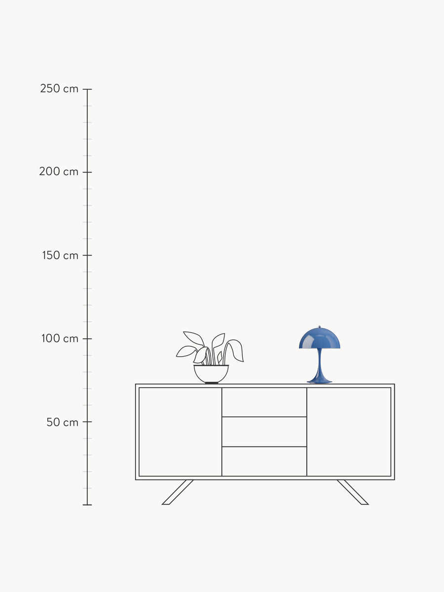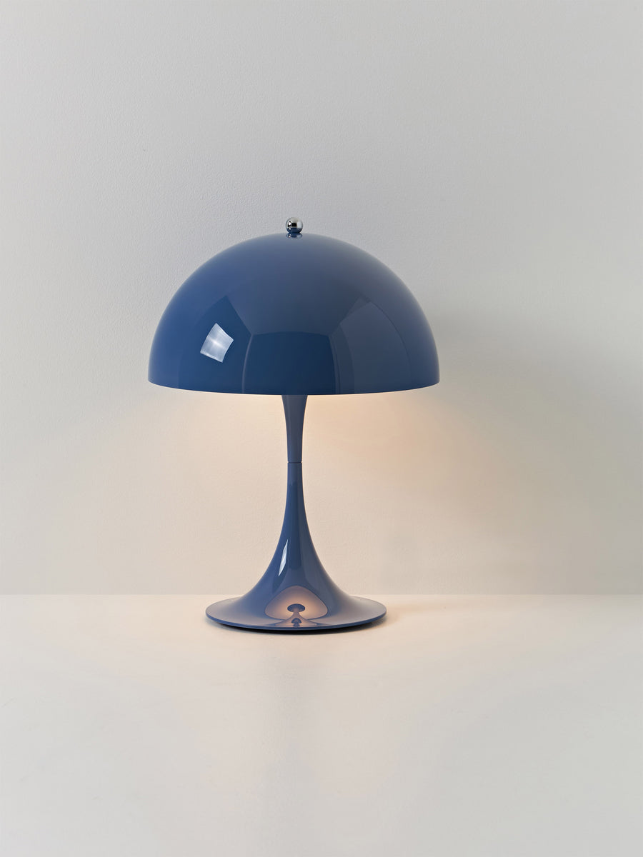 PANTHELLA, zaprojektowana w 1971 roku przez Vernera Pantona we współpracy z Louisem Poulsenem, łączy zabawny styl Pantona z organicznymi kształtami, tworząc wyjątkowe, przyjemne światło. Półkulisty klosz kieruje większość światła w dół, które następnie odbija się od podstawy w kształcie trąbki, oświetlając otoczenie delikatną, rozproszoną poświatą.