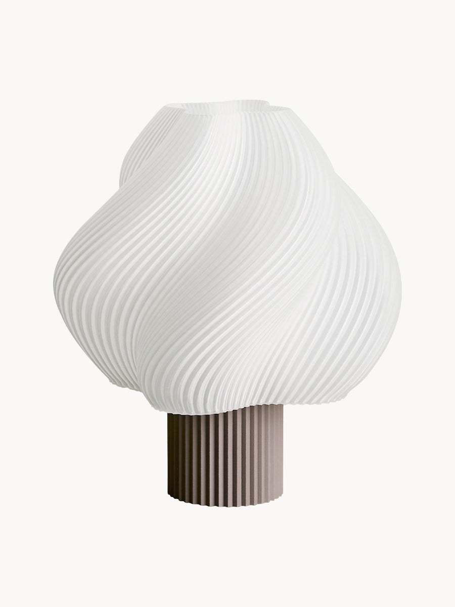 Lampa stołowa SOFT SERVE to bezprzewodowa, akumulatorowa wersja kultowej lampy SOFT SERVE. Zainspirowana wirującymi kształtami lodów, wnosi zabawną miękkość do każdego pomieszczenia, zarówno wewnątrz, jak i na zewnątrz. Mniejsza i bardziej poręczna, jest dostarczana z magnetycznym kablem ładującym USB i akumulatorem, idealna na półki, obiady na świeżym powietrzu lub przytulne zakątki, do których nie sięgają kable. Funkcja przyciemniania w 3 stopniach pozwala dostosować światło do nastroju.