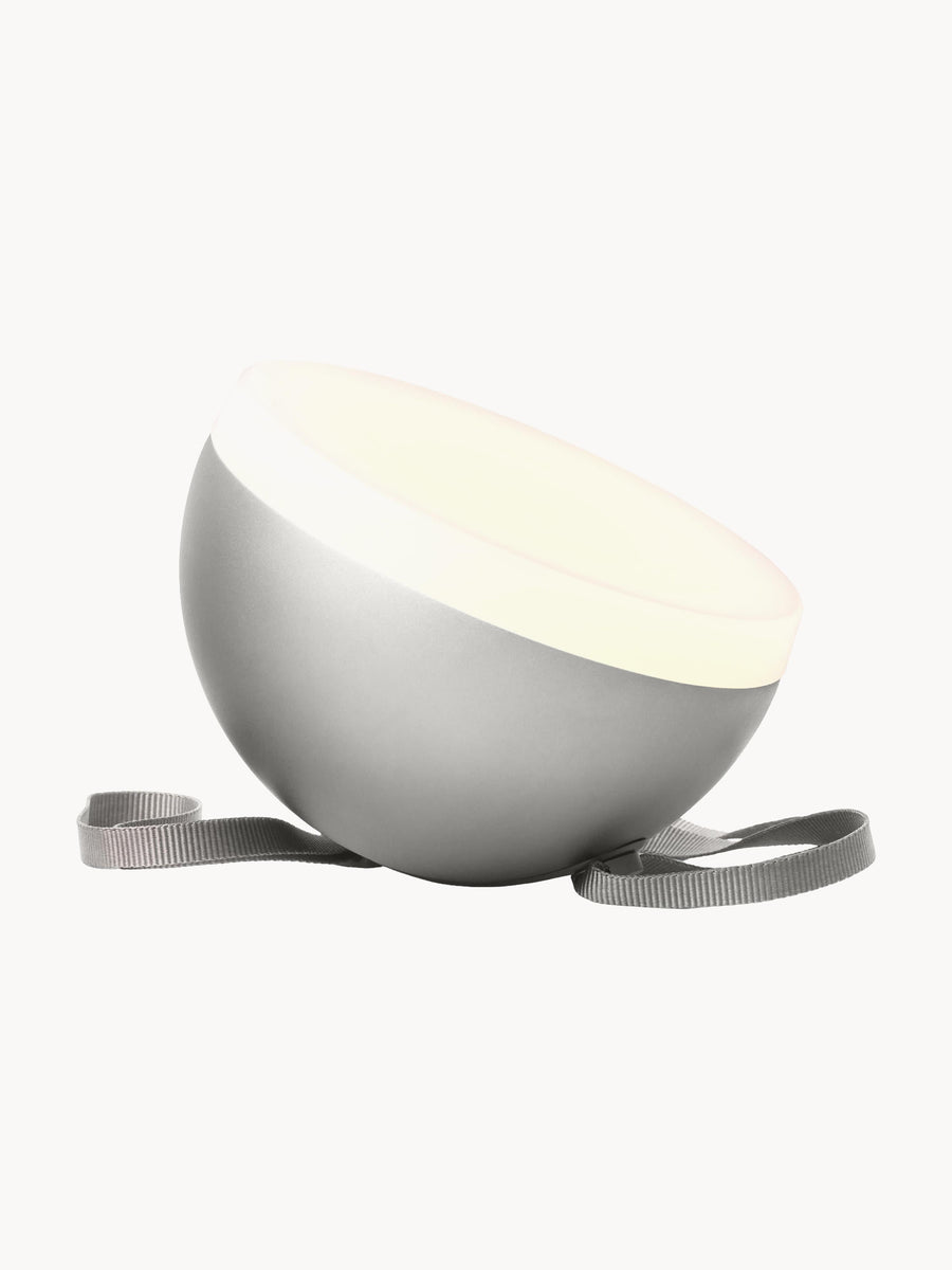 SPHERE to rzeźbiarski obiekt oświetleniowy, który można zabrać wszędzie. Dzięki geometrycznej formie półksiężyca przenośna lampa tworzy tajemniczą atmosferę, a jednocześnie zachwyca wyrafinowanymi funkcjami zapewniającymi długotrwałe użytkowanie. Jest odporna na wodę, kurz i wstrząsy, a jej praktyczny pasek umożliwia wygodne trzymanie lub zawieszenie. Zakrzywiony kształt sprawia, że dobrze leży w dłoni, a zintegrowany ściemniacz z funkcją pamięci pozwala dostosować intensywność światła. SPHERE można swobodnie przenosić po całym salonie, a także zabrać na balkon, taras czy w plener – do lasu, na plażę lub do parku.