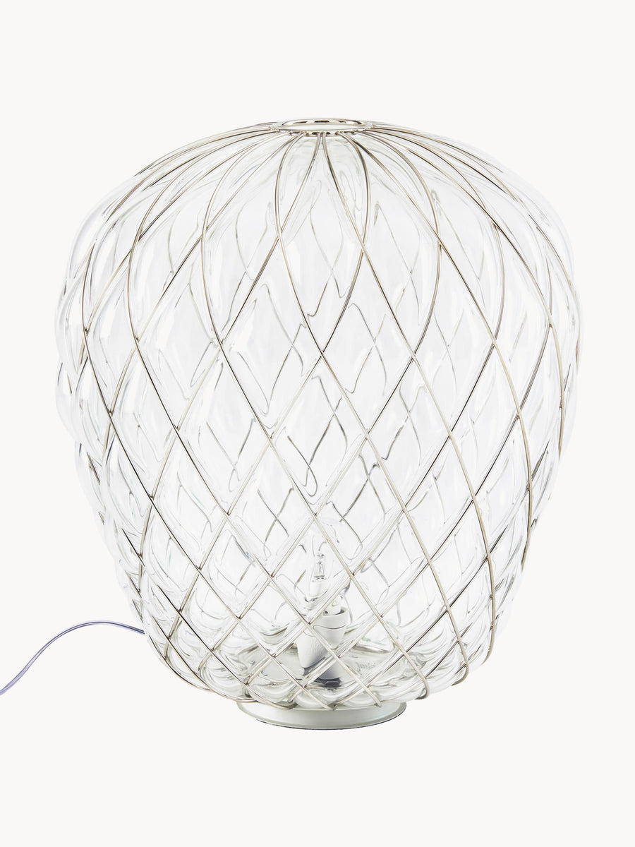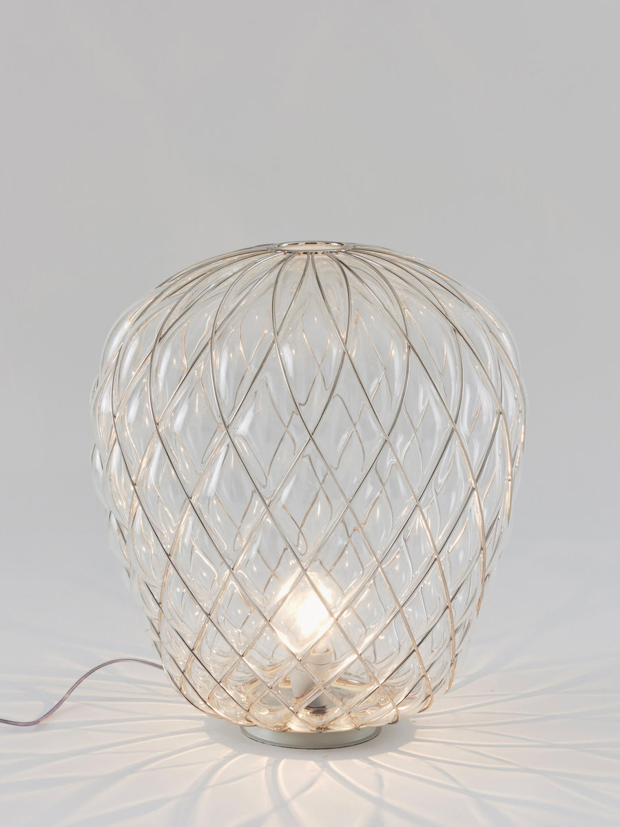 Ta ręcznie wykonana lampa stołowa PINECONE po włączeniu rzuca oszałamiające geometryczne cienie, które tańczą po ścianach. Skomplikowana rama w kształcie diamentu świadczy o wyjątkowym kunszcie, a funkcja przyciemniania pozwala ustawić idealną atmosferę. To uderzający element, który wprowadzi wyrafinowane światło do każdego pomieszczenia.