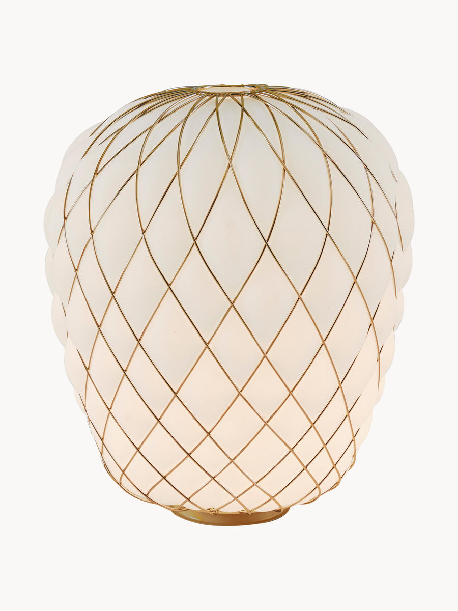 Misterny wzór diamentowy tej ręcznie wykonanej lampy stołowej PINECONE tworzy oszałamiające cienie, które tańczą po ścianach, gdy światło jest przyciemnione. Unikalna konstrukcja zapewnia ciepło i fakturę każdemu pomieszczeniu, a jednocześnie oferuje regulowane oświetlenie w zależności od nastroju. Idealna do dodania rzeźbiarskiego piękna w salonie lub sypialni.