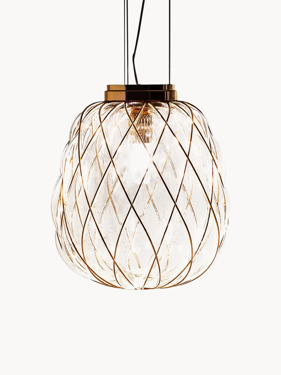 Zainspirowana doskonałą geometrią natury, lampa wisząca PINECONE MEDIUM tworzy oszałamiające wzory cieni tańczące po ścianach. Złożona konstrukcja klosza pięknie otacza żarówkę, jednocześnie filtrując światło w najbardziej czarujący sposób. Przemień dowolną przestrzeń za pomocą tego rzeźbiarskiego elementu, który jest zarówno dziełem sztuki, jak i oświetleniem.