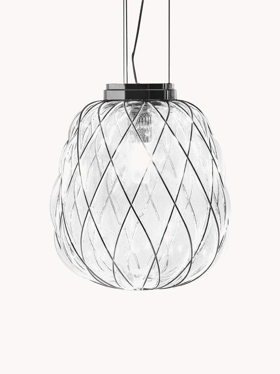 Lampa wisząca PINECONE MEDIUM wniesie do Twojej przestrzeni rzeźbiarskie piękno dzięki misternemu wzorowi na kloszu. Geometryczna konstrukcja tworzy hipnotyzujące wzory światła, które tańczą po ścianach. Idealna do dodania artystycznego akcentu nad stołami w jadalni lub w salonach, w których chcesz mieć coś naprawdę wyjątkowego.