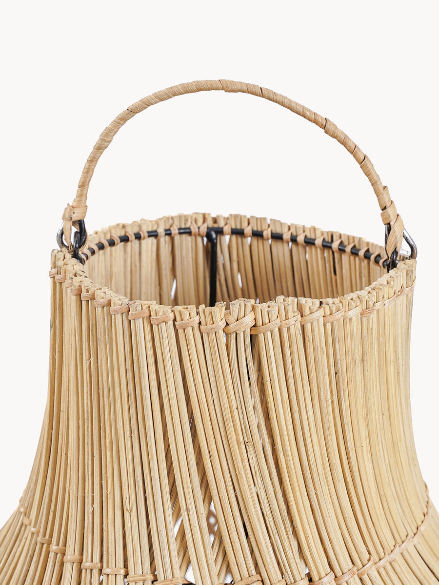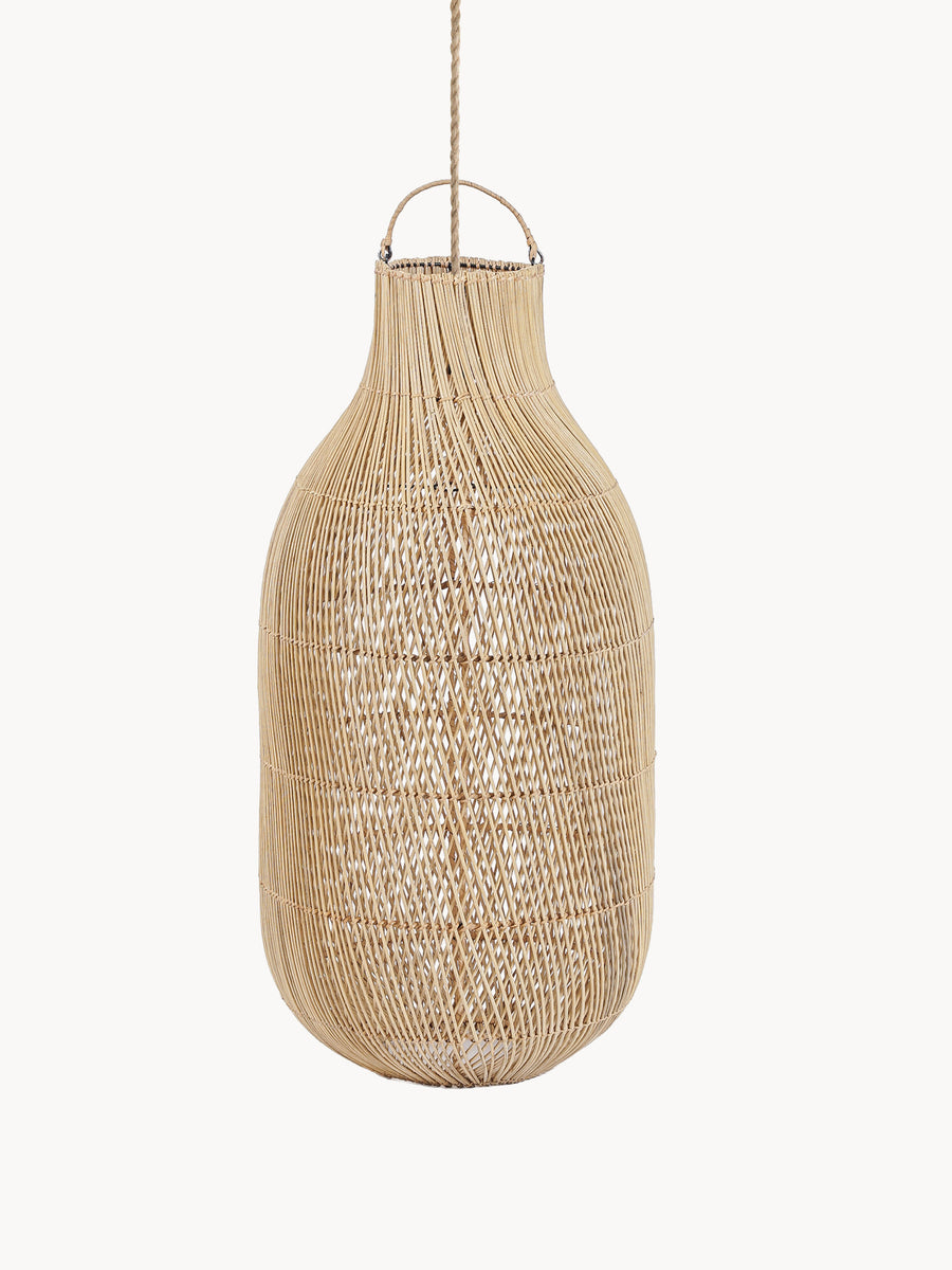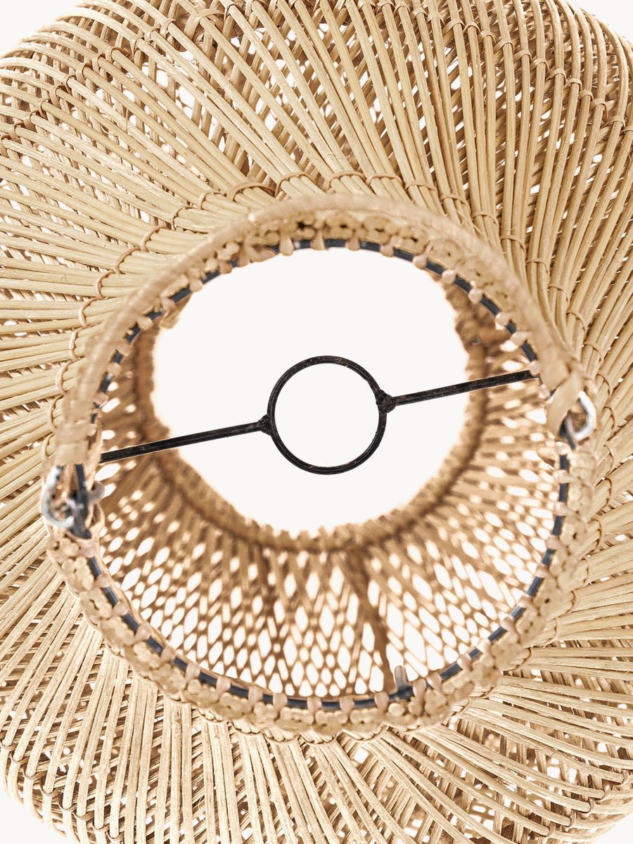 Dzięki rattannowej konstrukcji lampa wisząca KENDI wniesie do Twojego wnętrza odrobinę rustykalnego uroku. Złożone wzory dodają jej niepowtarzalnego charakteru, łącząc piękno natury z nowoczesną estetyką. Bądź kreatywny w sposobie jej wyeksponowania, zawieś ją pod sufitem, aby uzyskać elegancki wygląd, lub postaw na podłodze, aby nadać jej wyjątkowy akcent. Wybór należy do Ciebie! Produkt jest dostarczany bez elementów elektrycznych i wtyczek, dzięki czemu możesz wybrać odpowiednią lampę sufitową lub podłogową, która najlepiej odpowiada Twojemu stylowi.