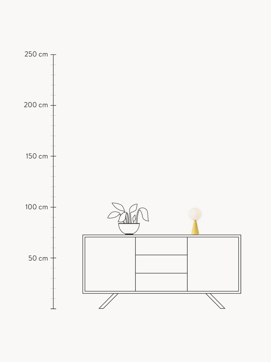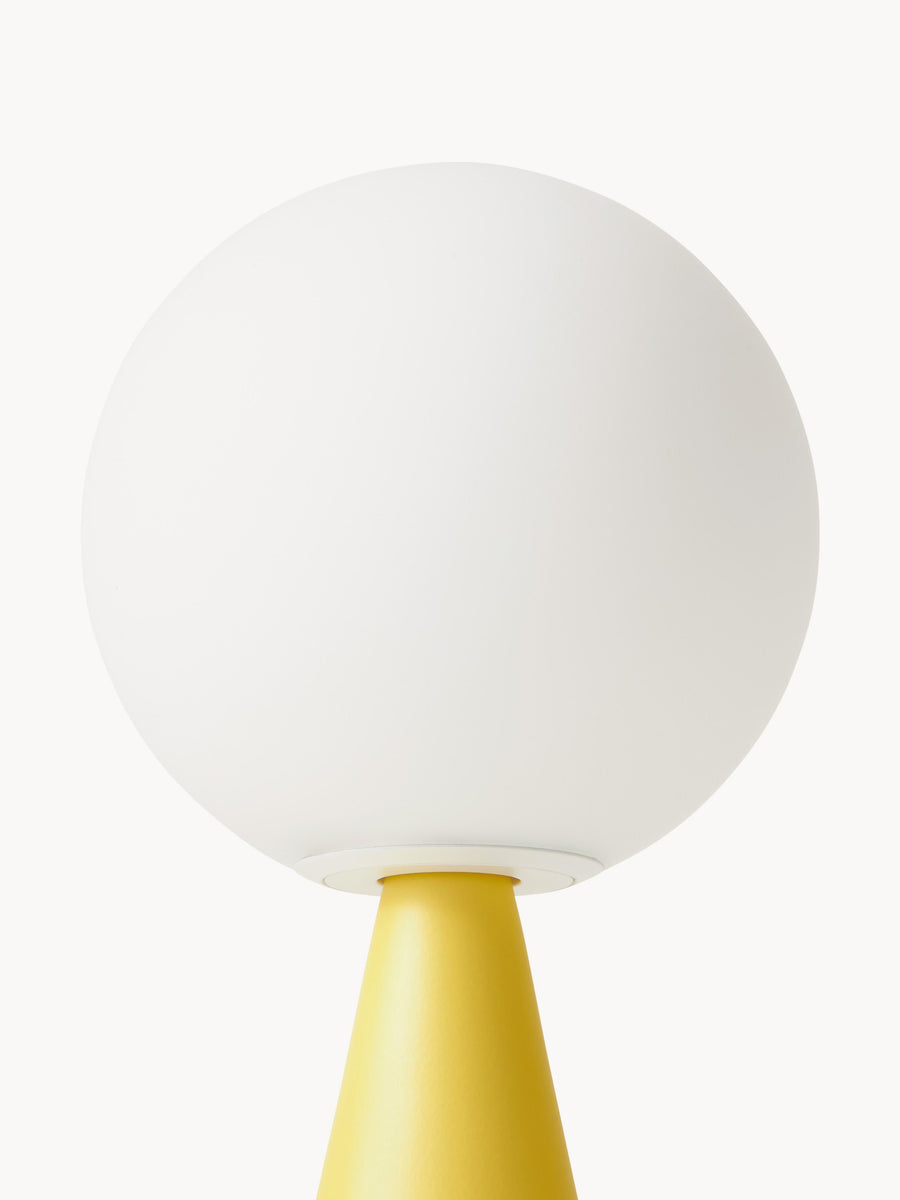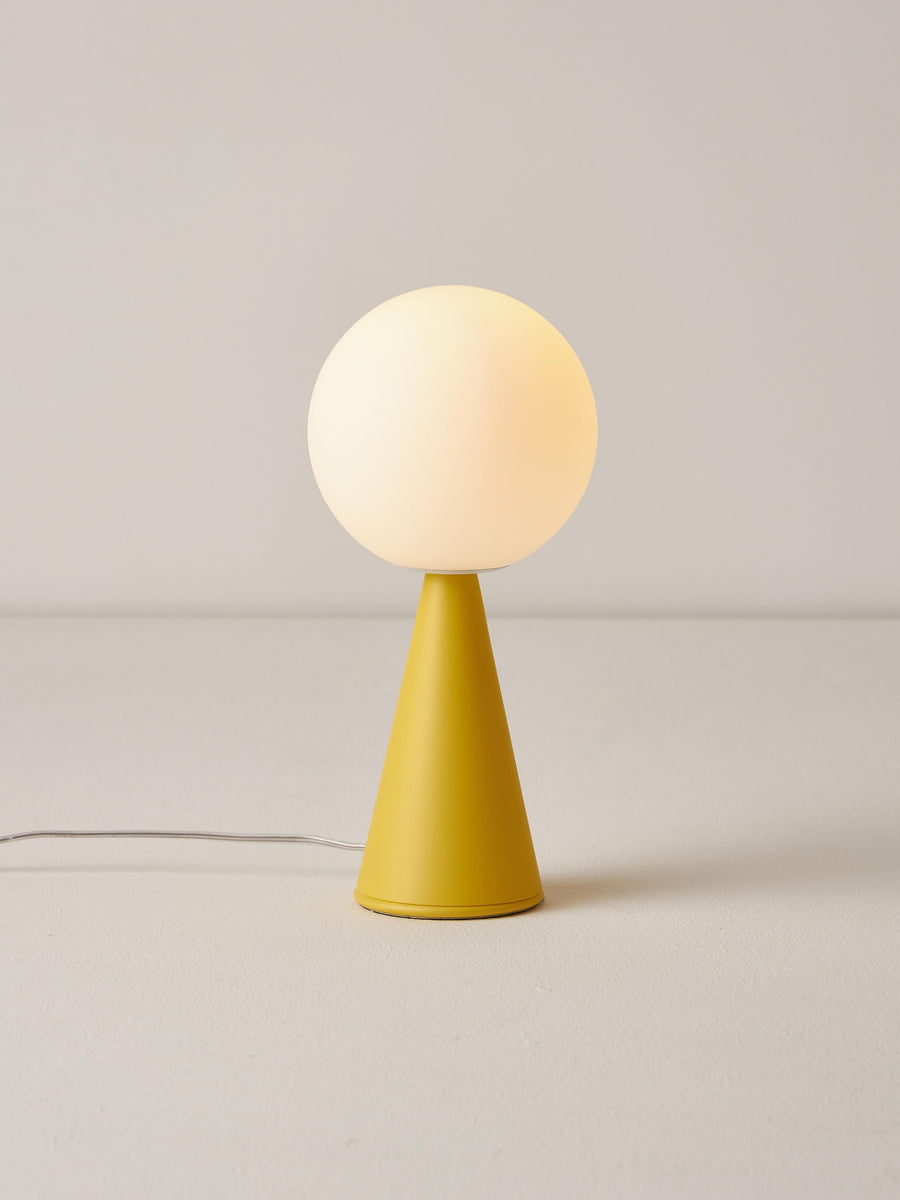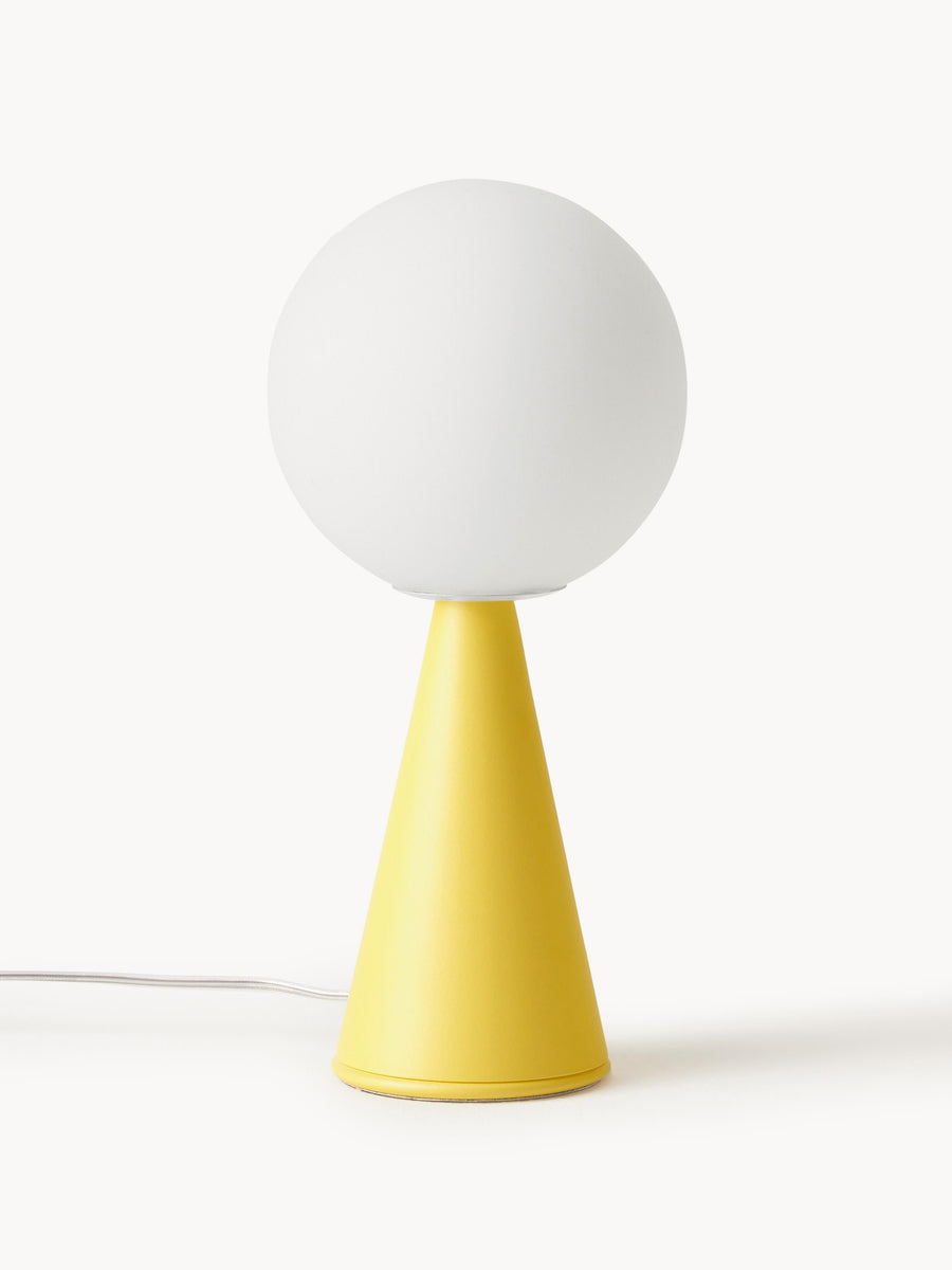 Lampa stołowa BILIA MINI łączy nowoczesny design z ponadczasową elegancją. Satynowa szklana kula, idealnie wyważona na stożkowej podstawie, emituje miękkie, przyjemne światło, które rozjaśni każde biurko lub stolik pomocniczy.