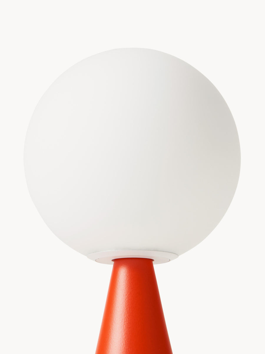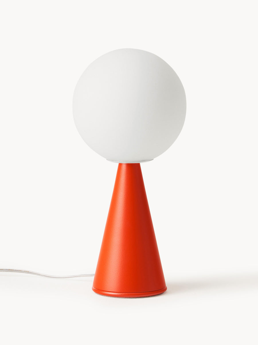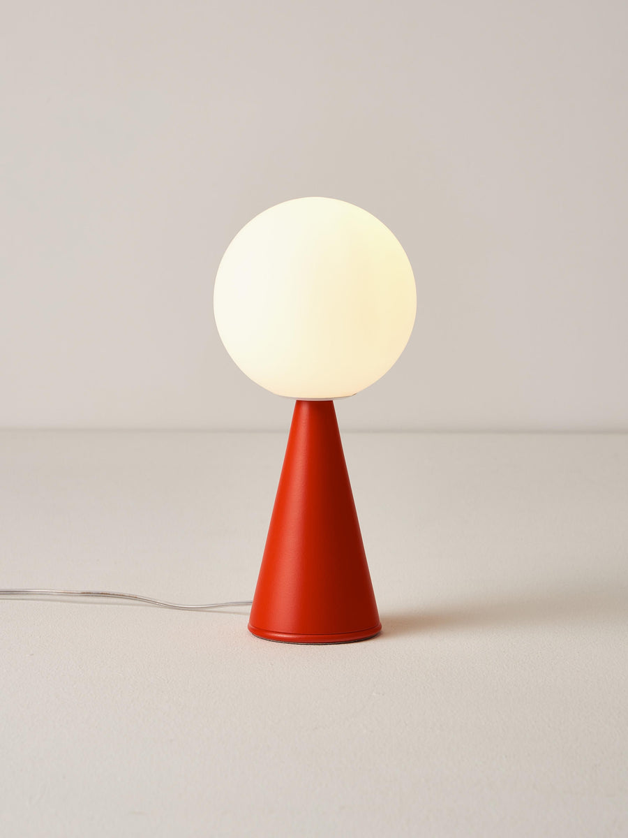 Lampa stołowa BILIA MINI łączy nowoczesny design z ponadczasową elegancją. Satynowa szklana kula, idealnie wyważona na stożkowej podstawie, emituje miękkie, przyjemne światło, które rozjaśni każde biurko lub stolik pomocniczy.