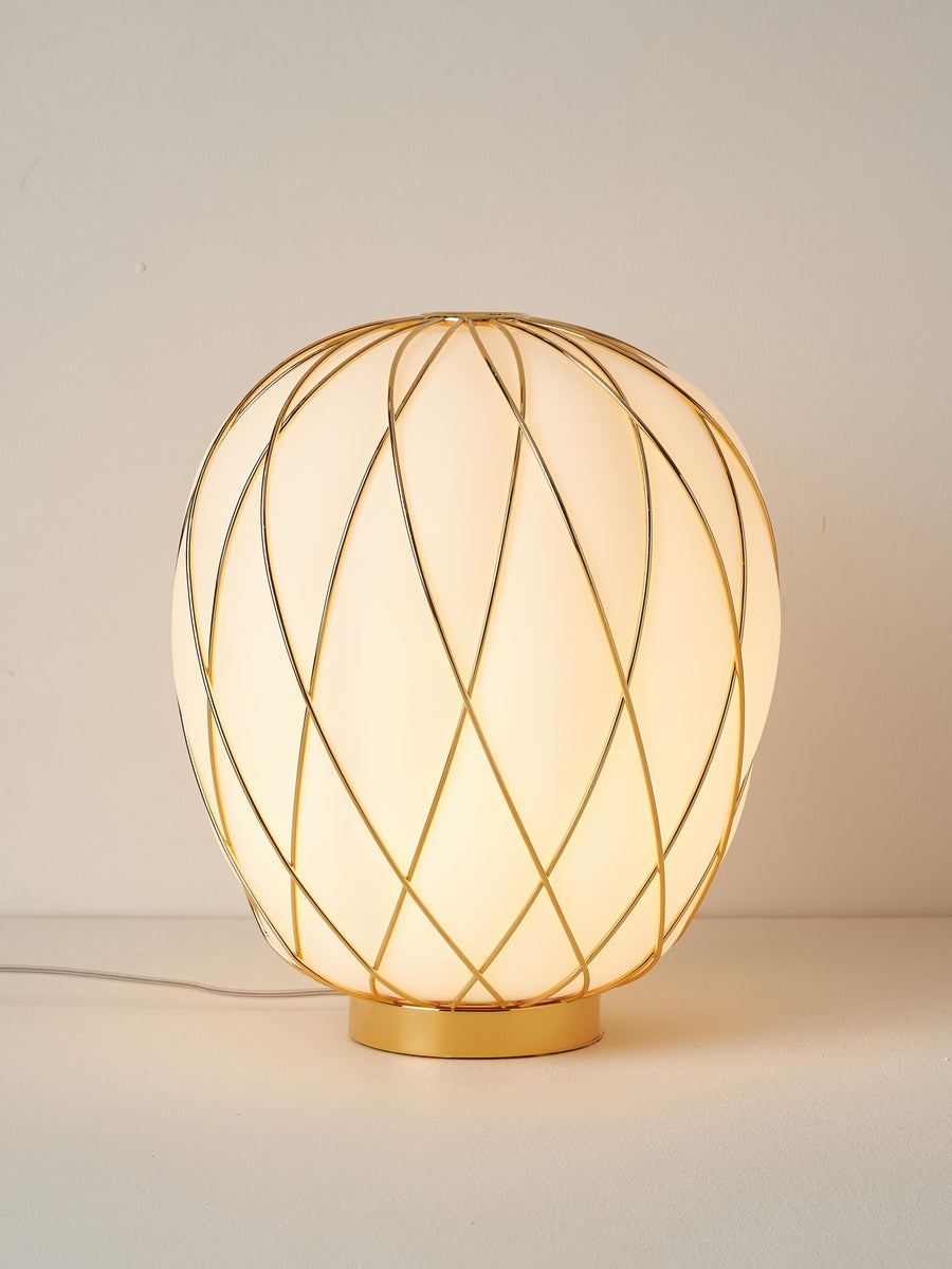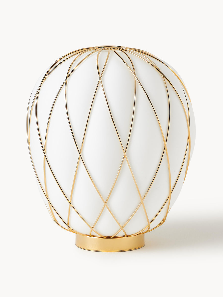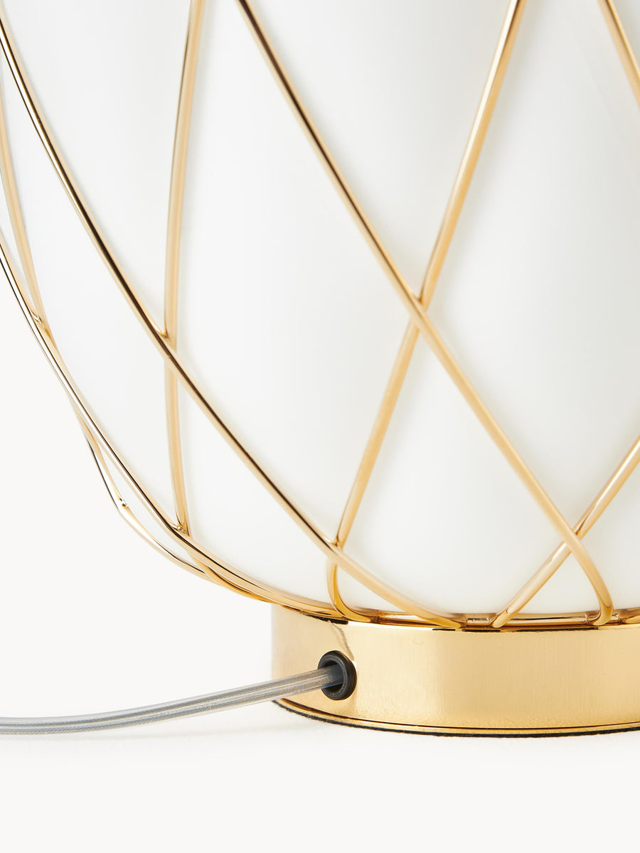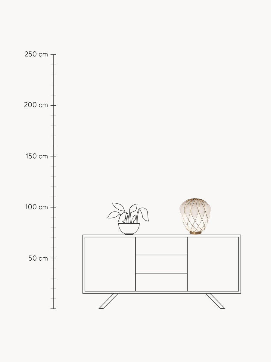 Ta ręcznie wykonana lampa stołowa PINECONE wnosi rzeźbiarską elegancję dzięki misternemu wzorowi na kloszu. Gra światła i cienia tworzy hipnotyzujące wzory, które pięknie zmieniają się w całej przestrzeni. Idealnie nadaje się do dodania wyrafinowanej atmosfery w każdym pomieszczeniu.