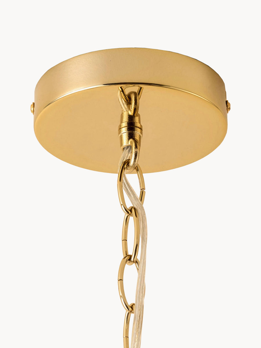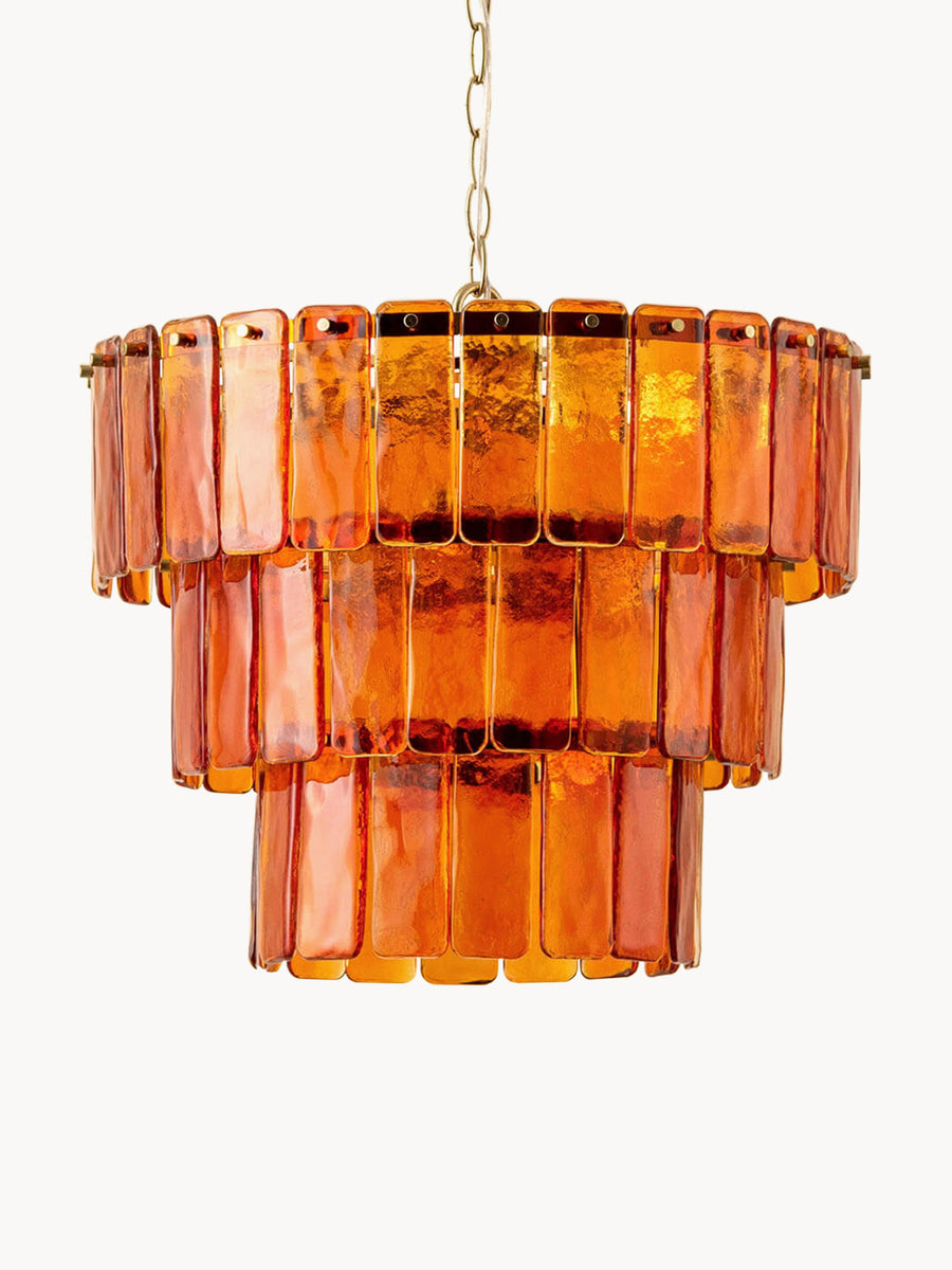 Lampa wisząca AMBER to współczesna interpretacja klasycznego żyrandola, z ręcznie wykonanymi kloszami ze szkła bursztynowego, które roztaczają miękkie, złote światło. Idealna do jadalni, wnętrz z wysokim sufitem i przestronnych salonów — jej rzeźbiarska forma natychmiast przyciąga uwagę.