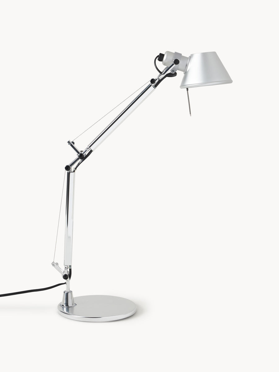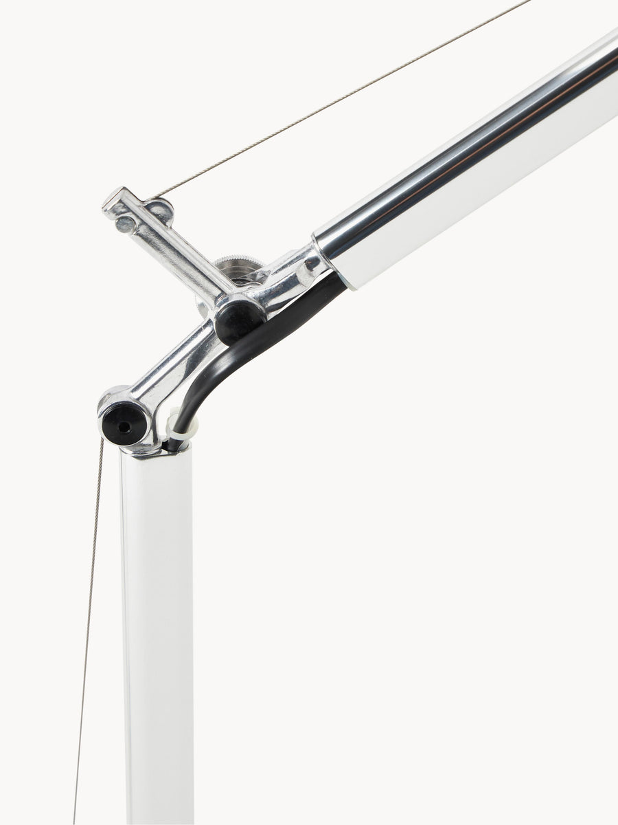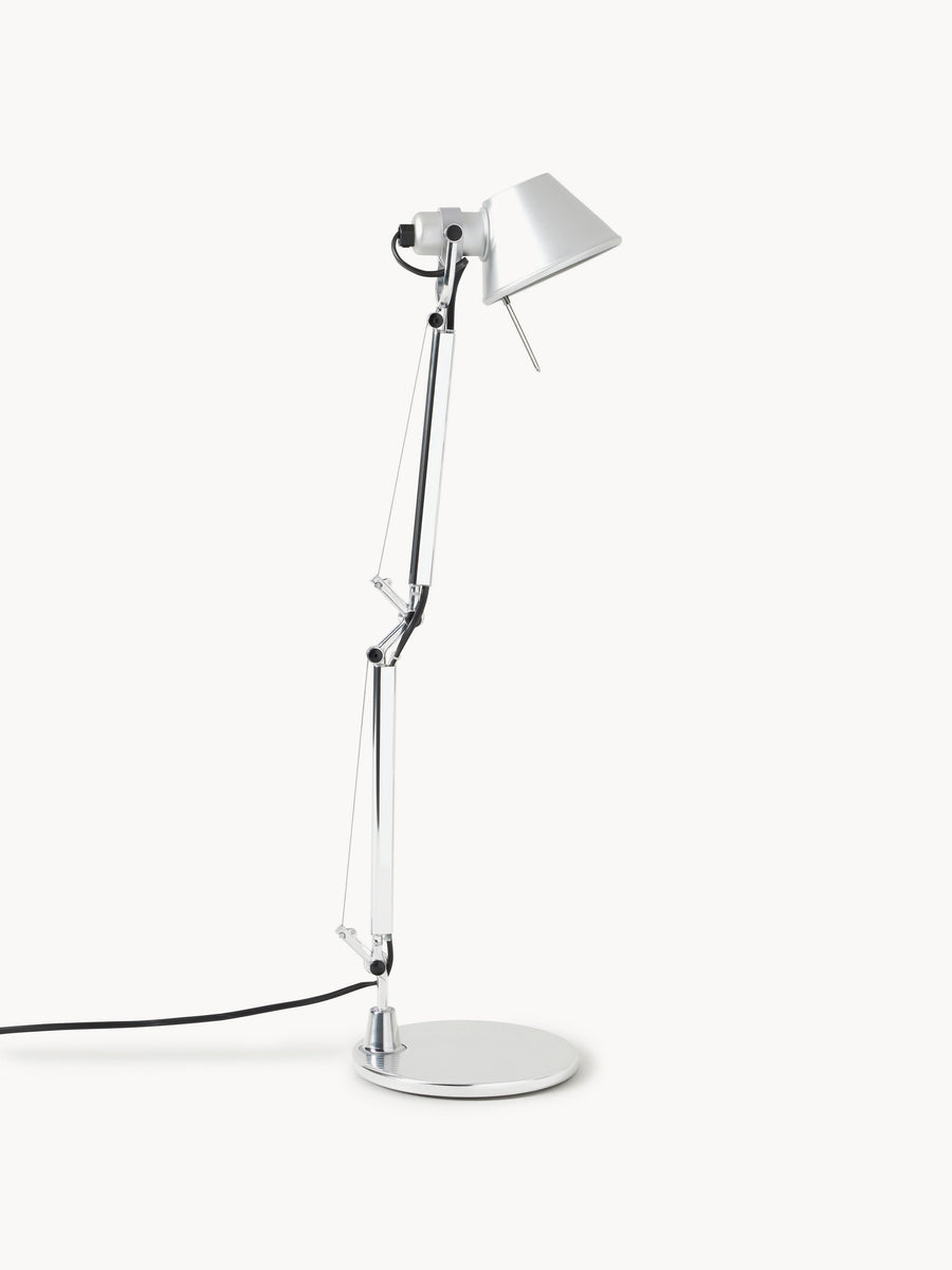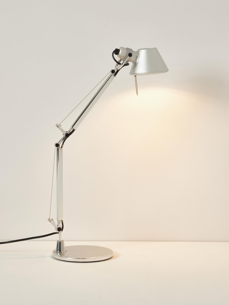 Tolomeo Micro ma niepowtarzalny design: regulowane ramię, matowy, aluminiowy klosz oraz polerowane złącza i wsporniki z systemem równoważenia sprężyn.