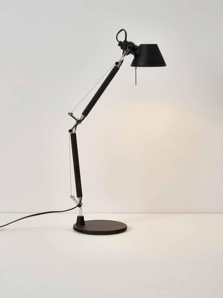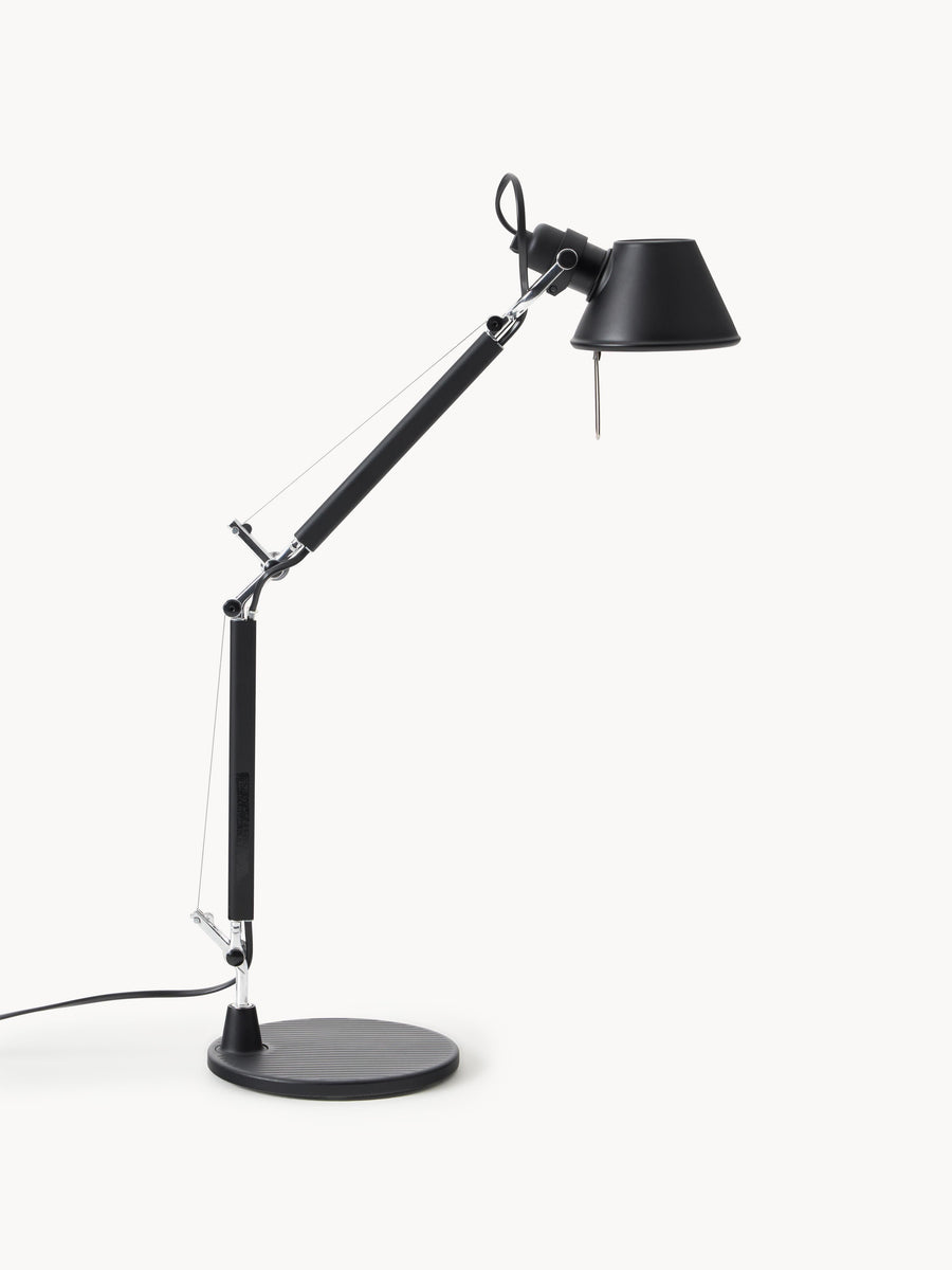 Tolomeo Micro ma niepowtarzalny design: regulowane ramię, matowy, aluminiowy klosz oraz polerowane złącza i wsporniki z systemem równoważenia sprężyn.