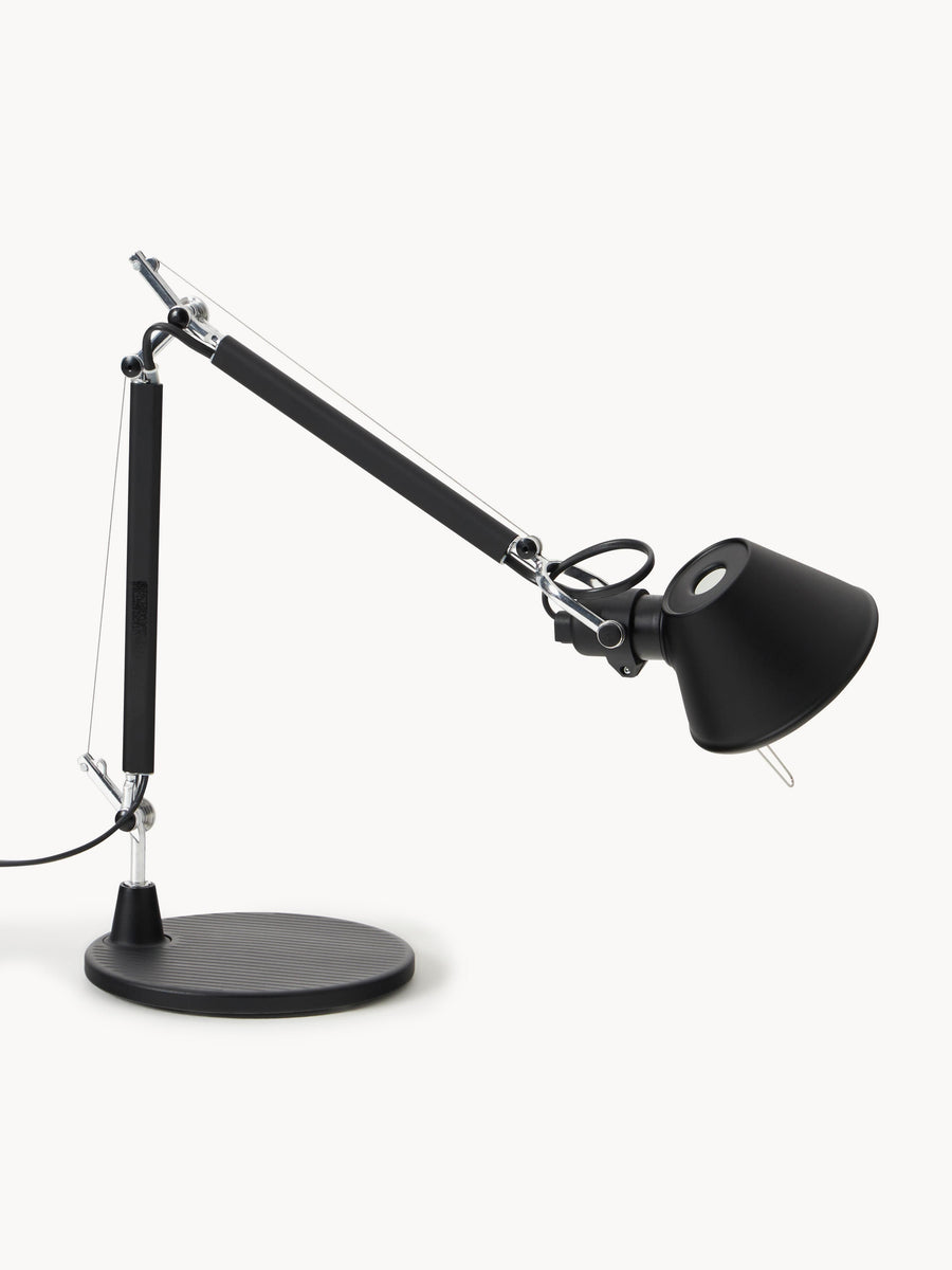 Lampa biurkowa MICRO TOLOMEO to mniejsza wersja legendarnego projektu z 1987 roku autorstwa Michele De Lucchi i Giancarlo Fassina. Dzięki pomniejszonej aluminiowej konstrukcji, przegubowemu ramieniu i regulowanemu kloszowi oferuje tę samą ponadczasową elastyczność w bardziej kompaktowej formie. Nadaje charakter i funkcjonalność każdemu pomieszczeniu.