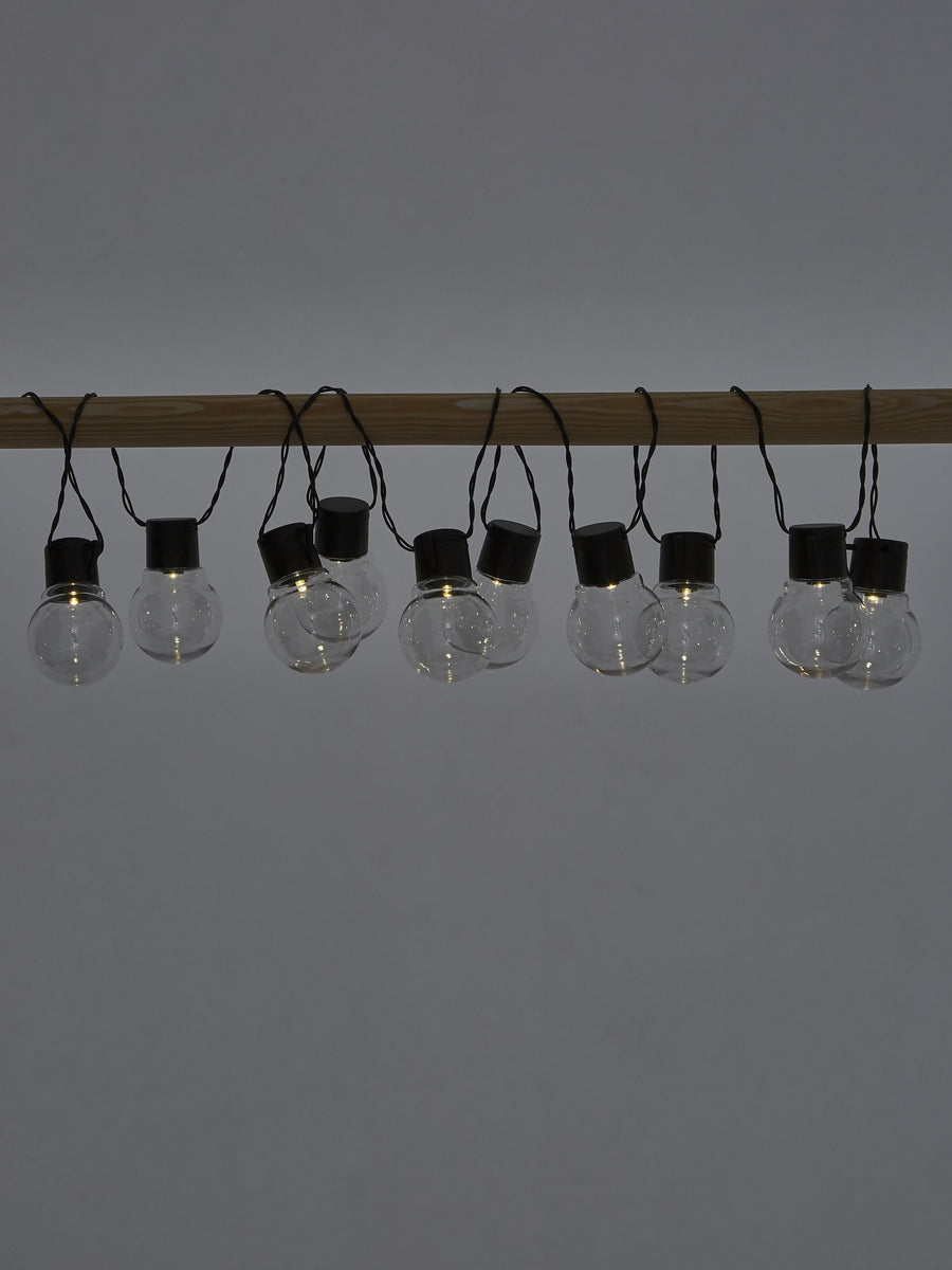Solarna girlanda świetlna z 10 latarniami LED świeci ciepłą bielą.