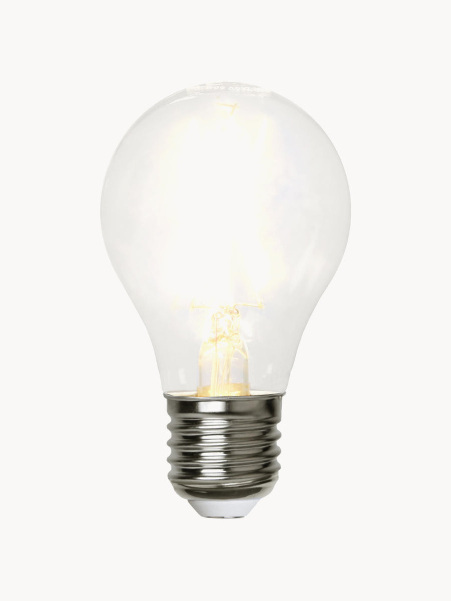 Żarówka świeci ciepłym odcieniem bieli i ma niską moc.