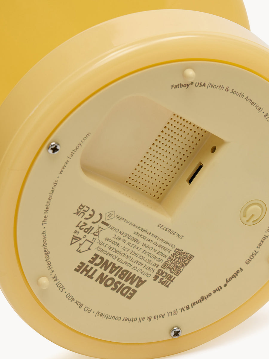 EDISON THE AMBIANCE to bezprzewodowa lampa stołowa o delikatnym charakterze. Jej okrągły kształt, błyszcząca powierzchnia i subtelne pastelowe kolory sprawiają, że każde pomieszczenie staje się przytulne. Lampę LED można ściemniać za pomocą przycisku u dołu. Po pełnym naładowaniu świeci nawet przez 24 godziny. Dzięki lekkiej, ale solidnej konstrukcji, łatwo ją przenosić. Subtelne logo Fatboy zdobi górną część klosza. Niezależnie od tego, czy jest włączona, czy wyłączona, EDISON THE AMBIANCE zawsze wprowadza przyjazną dawkę designu.