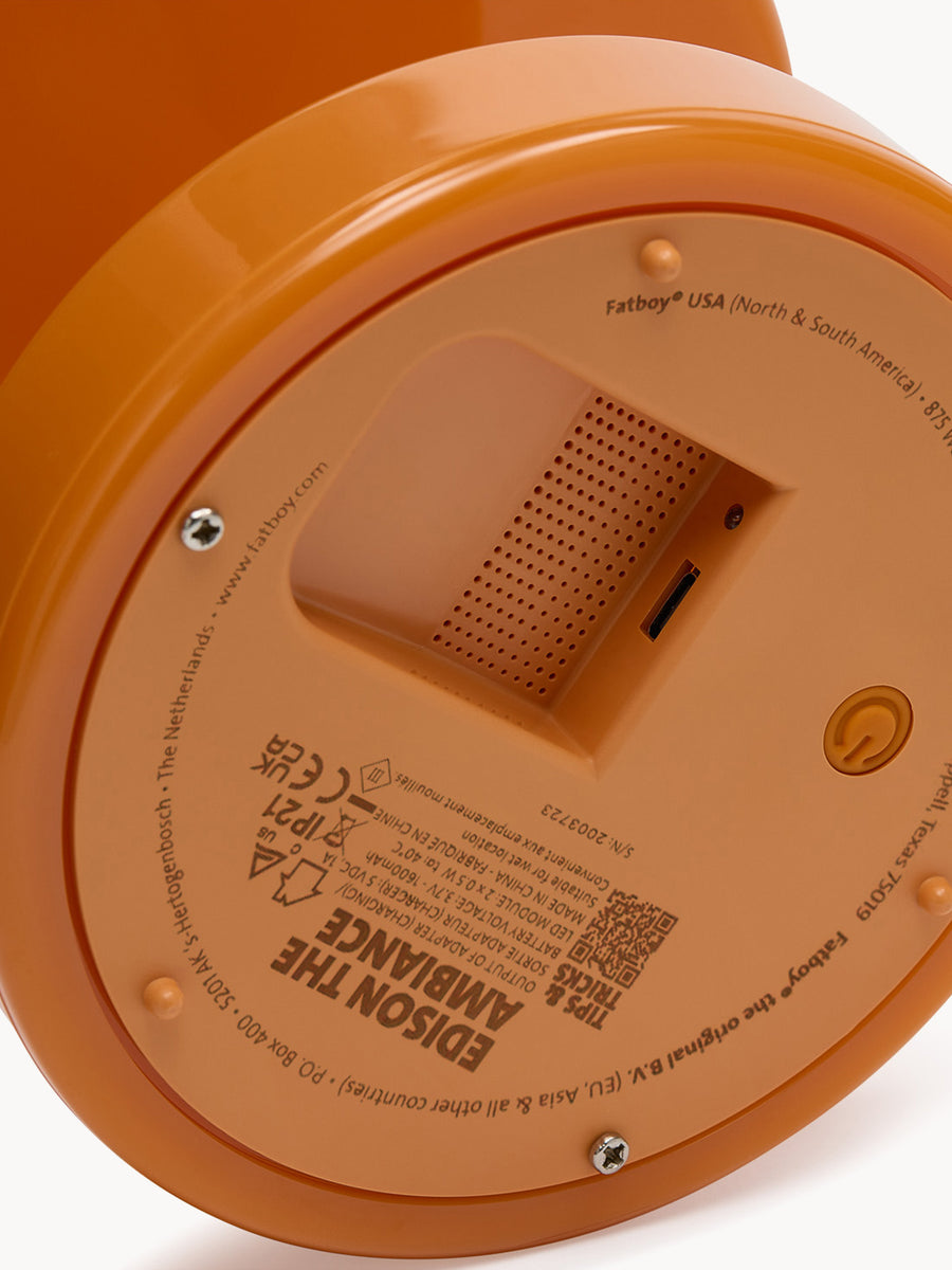 EDISON THE AMBIANCE to bezprzewodowa lampa stołowa o delikatnym charakterze. Jej okrągły kształt, błyszcząca powierzchnia i subtelne pastelowe kolory sprawiają, że każde pomieszczenie staje się przytulne. Lampę LED można ściemniać za pomocą przycisku u dołu. Po pełnym naładowaniu świeci nawet przez 24 godziny. Dzięki lekkiej, ale solidnej konstrukcji, łatwo ją przenosić. Subtelne logo Fatboy zdobi górną część klosza. Niezależnie od tego, czy jest włączona, czy wyłączona, EDISON THE AMBIANCE zawsze wprowadza przyjazną dawkę designu.