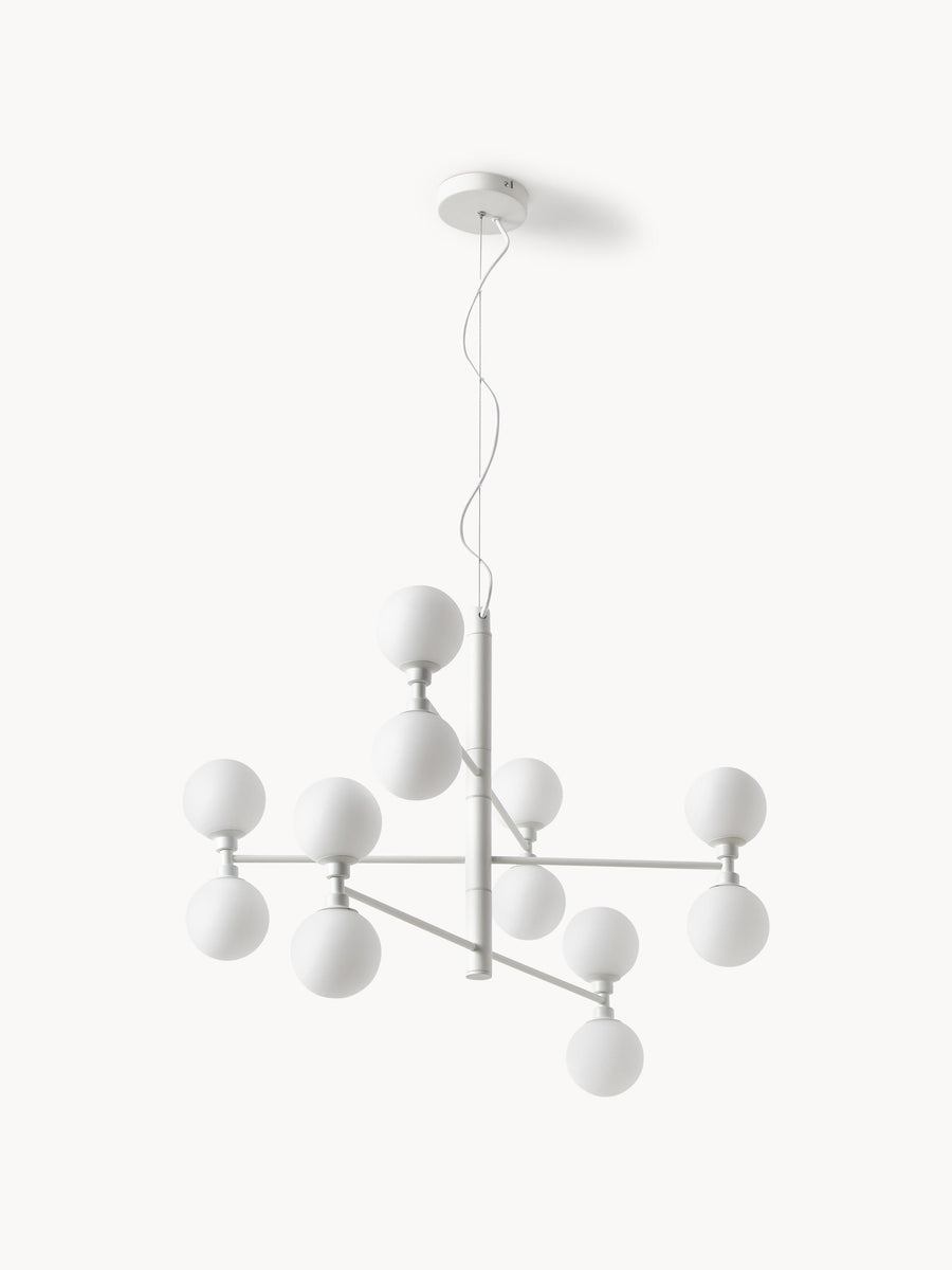 Nowoczesna interpretacja żyrandola, który oświetli całe pomieszczenie. Nasza seria GROVER z kulistymi kloszami wykonanymi z półprzezroczystego szkła opalowego jest dla wszystkich, którzy lubią styl Glamour. Model dostępny jest w kolorze złotym i srebrnym, a fanom nowoczesnych wnętrz proponujemy matową czerń lub biel.