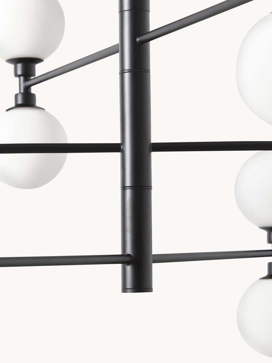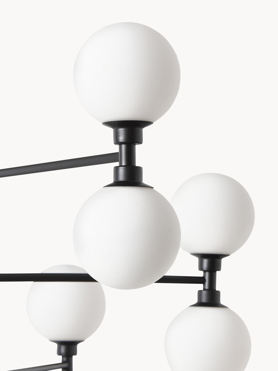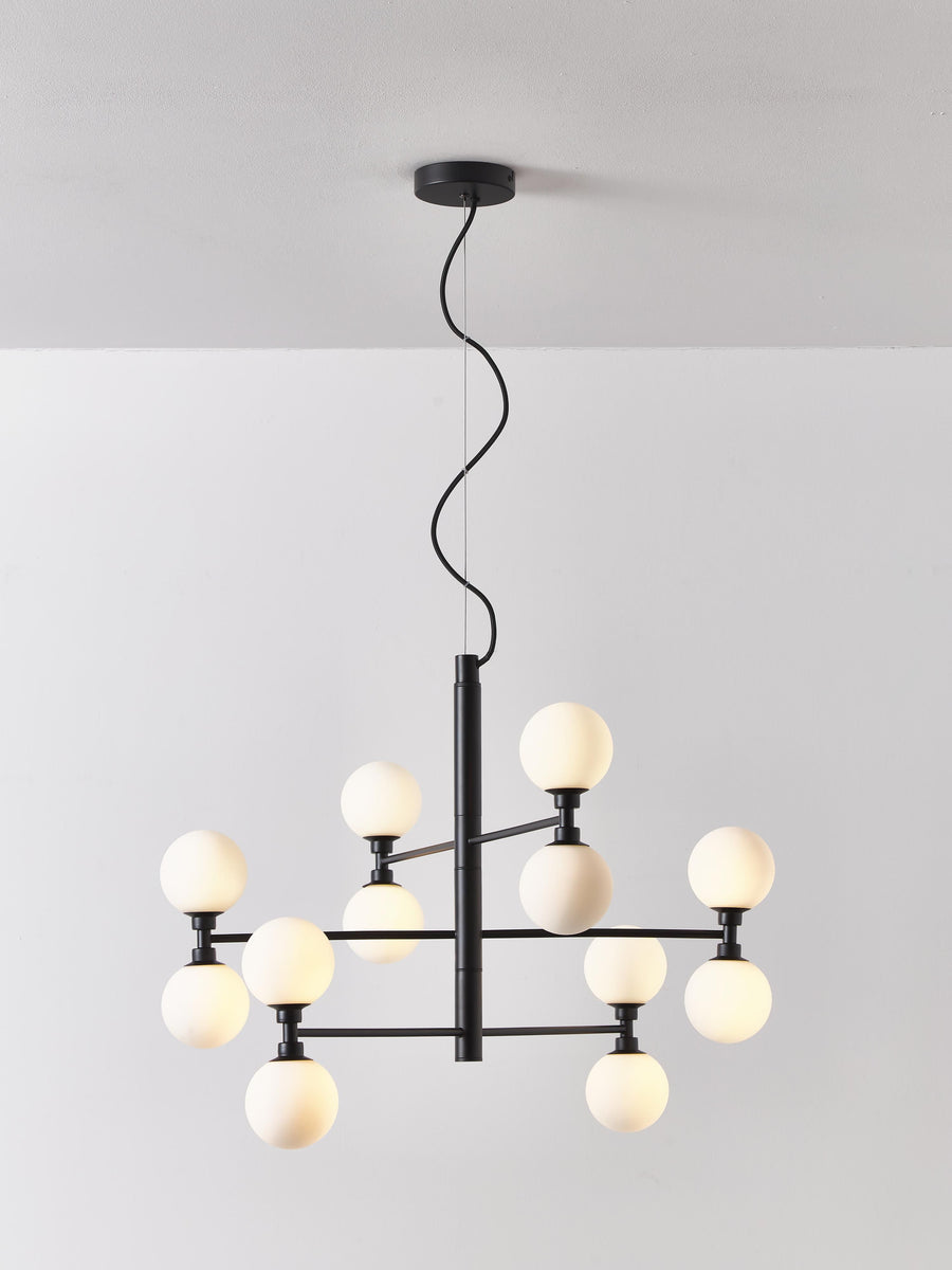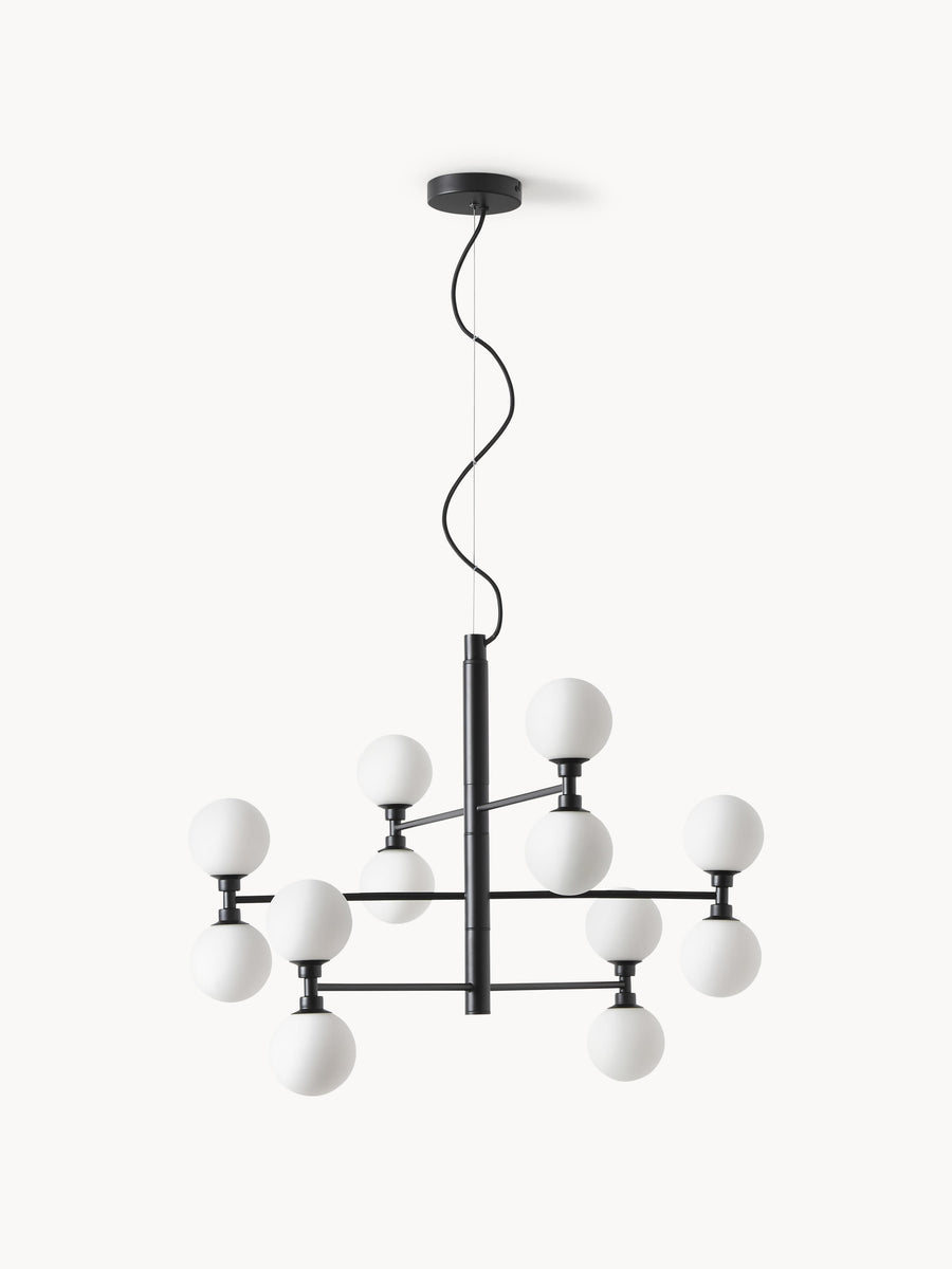Nowoczesna interpretacja żyrandola, który oświetli całe pomieszczenie. Nasza seria GROVER z kulistymi kloszami wykonanymi z półprzezroczystego szkła opalowego jest dla wszystkich, którzy lubią styl Glamour. Model dostępny jest w kolorze złotym i srebrnym, a fanom nowoczesnych wnętrz proponujemy matową czerń lub biel.