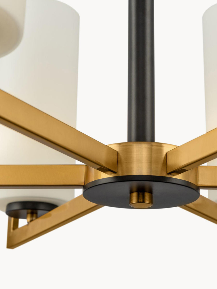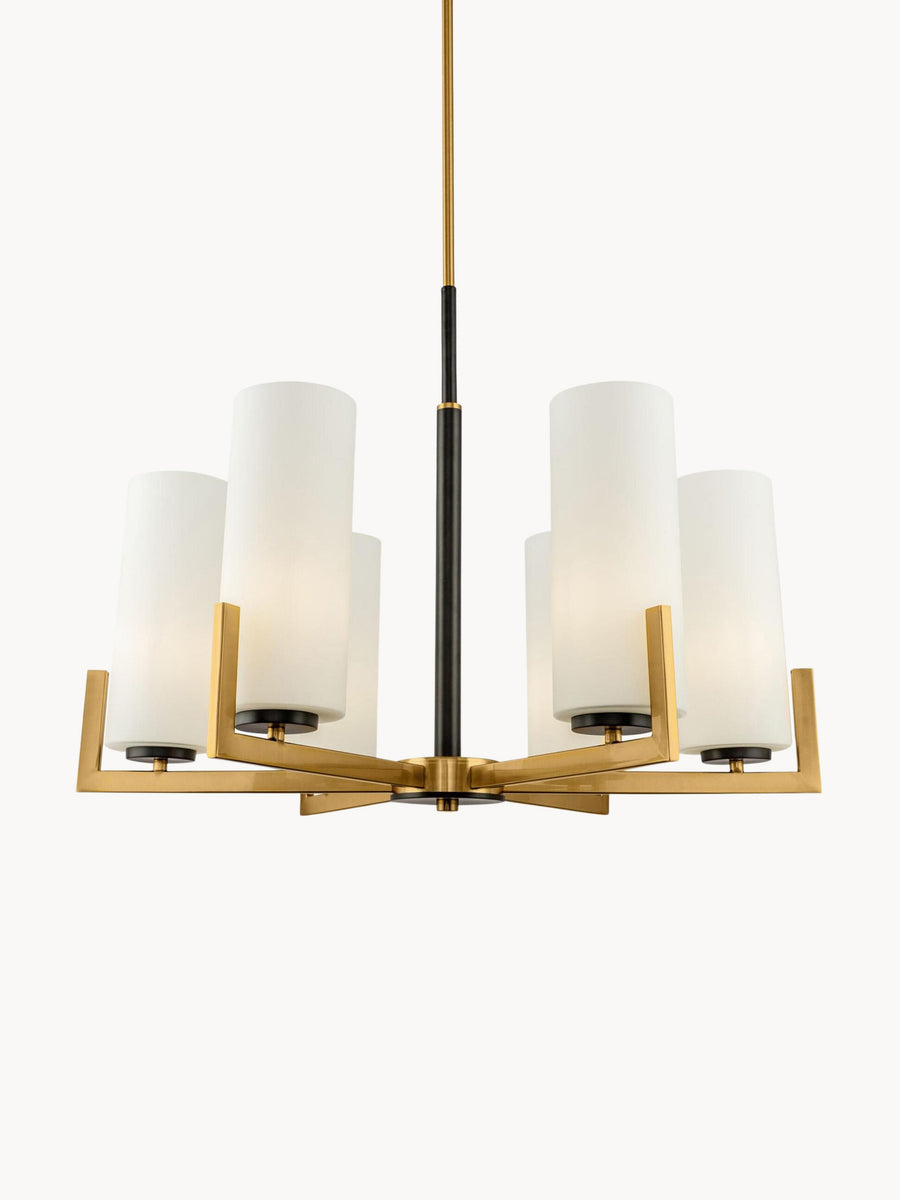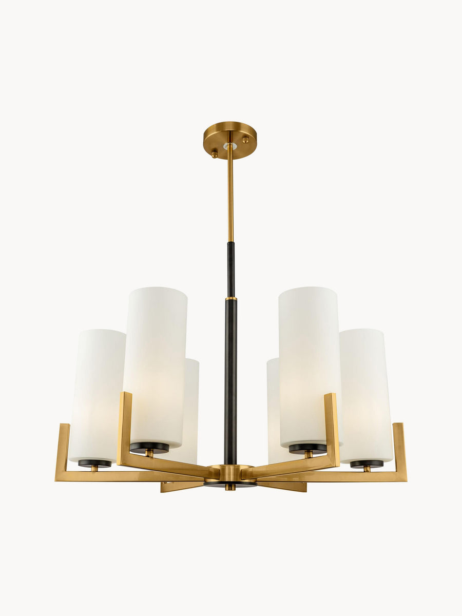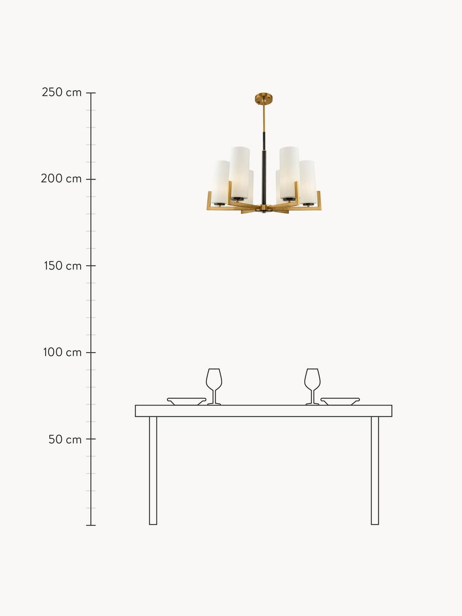 Duży żyrandol z cylindrycznymi kloszami ze szkła w białym kolorze